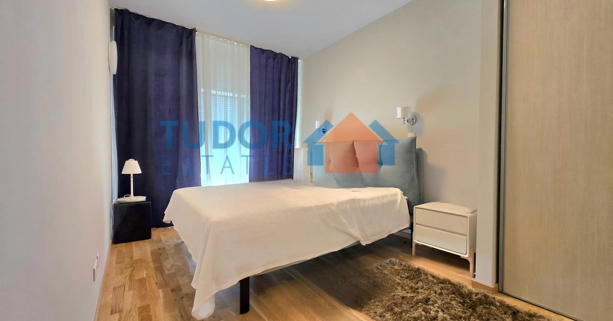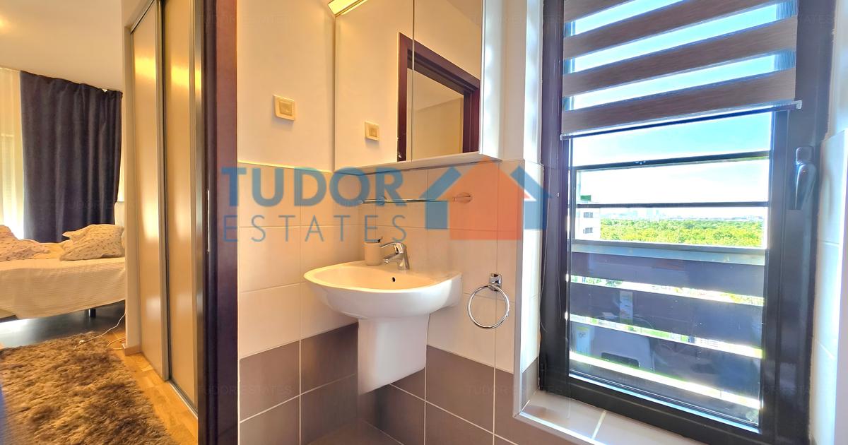 Spacious two bedrooms apartment located at the forth floor of a modern building, fully equipped kitchen, generous living room, perfect for a couple or a family with one child. Just two minutes driving distance towards Baneasa Shopping Center and five minutes driving distance to British and American Schools, this apartment grants easy access towards the most important facilities of the area. The compound is considered to be one of the most popular thanks to the green and quiet environment and many facilities like outdoor pool and gym. Henri Coanda Airport is within ten minutes driving distance away.