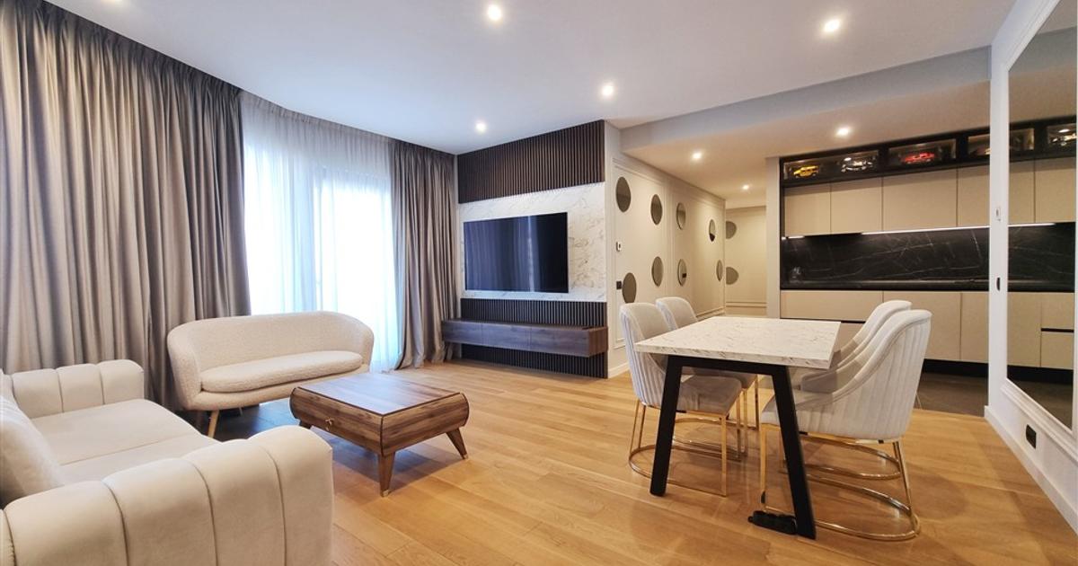 This elegant 4-room apartment now available for rent is fully furnished and equipped, located on the 8th floor of an 11-storey tower, and offers 117 sqm usable area plus a 9 sqm terrace, with open views over the Aviatiei residential area. Located next to Herastrau Park, One Herastrau Towers is a modern mixed-use residential complex completed in 2021, offering premium apartments in one of Northern Bucharest’s most sought-after areas, Aviatiei – Herastrau. The location provides excellent access to lifestyle and business amenities: Satul Francez (500 m), Herastrau Park (750 m), Promenada Mall and Aurel Vlaicu metro station (1.2 km), as well as cafés, restaurants, Pilates studios and Mega Image & Lidl supermarkets, all within walking distance. Layout: