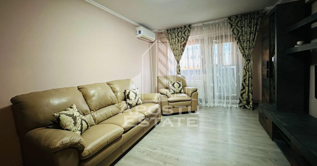 APOSTU ESTATE va propune spre inchiriere Vă propunem spre închiriere un apartament spațios și bine compartimentat, situat în zona Intim, la etajul 7 din 8 al unui imobil îngrijit. Cu o suprafață utilă de 72 mp, locuința este compusă din 2 camere luminoase, baie, bucătărie separată și balcon închis, oferind un spațiu generos și confortabil, ideal pentru un cuplu sau o familie. Apartamentul dispune de: - Centrală termică proprie - Aer condiționat - TV - Cablu TV și internet - Mașină de spălat rufe - Mașină de spălat vase - Rulouri la geamuri - Frigider Poziționarea excelentă asigură acces rapid la numeroase puncte de interes: sedii bancare, magazine precum Kaufland și Lidl, spital, farmacii, școală și stații de transport public. Un apartament ideal pentru cei care își doresc confort, spațiu generos și acces facil la toate facilitățile urbane importante. Pentru mai multe detalii sau pentru programarea unei vizionari, echipa Apostu Estate va sta cu profesionalism...
