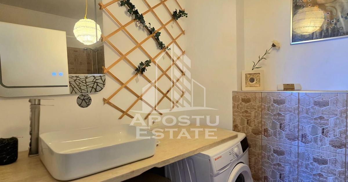 Apostu Estate va propune spre inchiriere un apartament cu 2 camere, situat in complexul rezidential Ared – zona Afi, una dintre cele mai cautate zone din Arad. Proprietatea are o suprafata utila de 45 mp si este compartimentata eficient, oferind un living luminos cu bucatarie open space, dormitor matrimonial, baie moderna si balcon. Apartamentul beneficiaza de incalzire in pardoseala, un confort termic superior si costuri optimizate la intretinere. Imobilul este recent renovat, amenajat in stil modern, cu finisaje de calitate si mobilier ales atent, fiind ideal atat pentru locuit, cat si pentru investitie (inchiriere imediata datorita pozitiei excelente). Complexul Ared ofera acces securizat, lift, spatii verzi si o comunitate bine organizata. Vecinatati: – Atrium Mall (Afi) – Carrefour, Lidl, Kaufland – Stadionul UTA – Mijloace de transport in comun – Restaurante, cafenele si farmacii Pozitionarea excelenta asigura acces rapid catre centrul orasului si principalele puncte de...