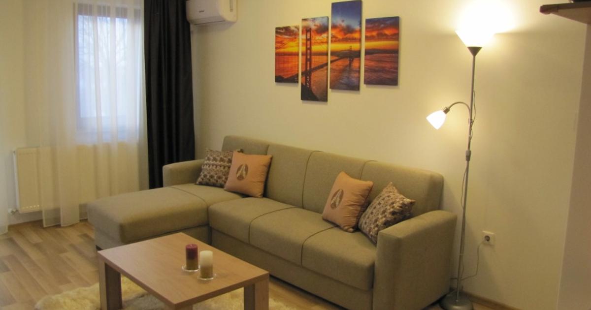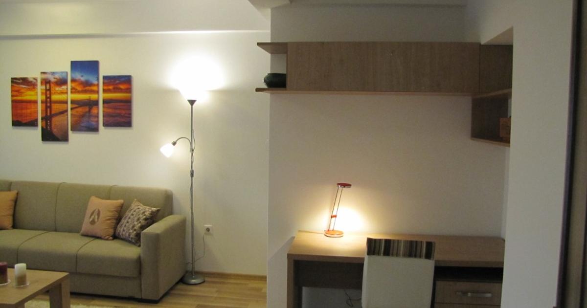 Apartament 54mp utili si balcon de 9mp, 2 cam, nou, mobilat si utilat modern (TV Lcd WiFi, aer conditionat, plita gaz+cuptor electric, hota, microunde, combina frigorifica, masina de spalat vase, in bucatarie sistem de ventilatie performant, masina de spalat rufe, aspirator, calcator, masa de calcat, uscator rufe, video interfon, cablu tv si internet, contoare proprii de apa si centrala termica pe gaz in condensare). Apartamentul este compus din :1 living, 1 bucatarie,1 dormitor matrimonial, 1 hol,1 baie,1 balcon mare. Apartamentul este situat la etajul 3/4, bloc cu lift, in zona Cantemir (Sextil Puscariu), aproape de LOTUS CENTER, mijloace de transport in comun. Dispune de un loc de parcare privat acoperit, in curtea imobilului. Imobilul este monitorizat video. Pret 450 euro /luna.