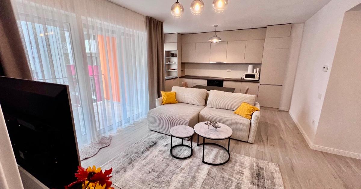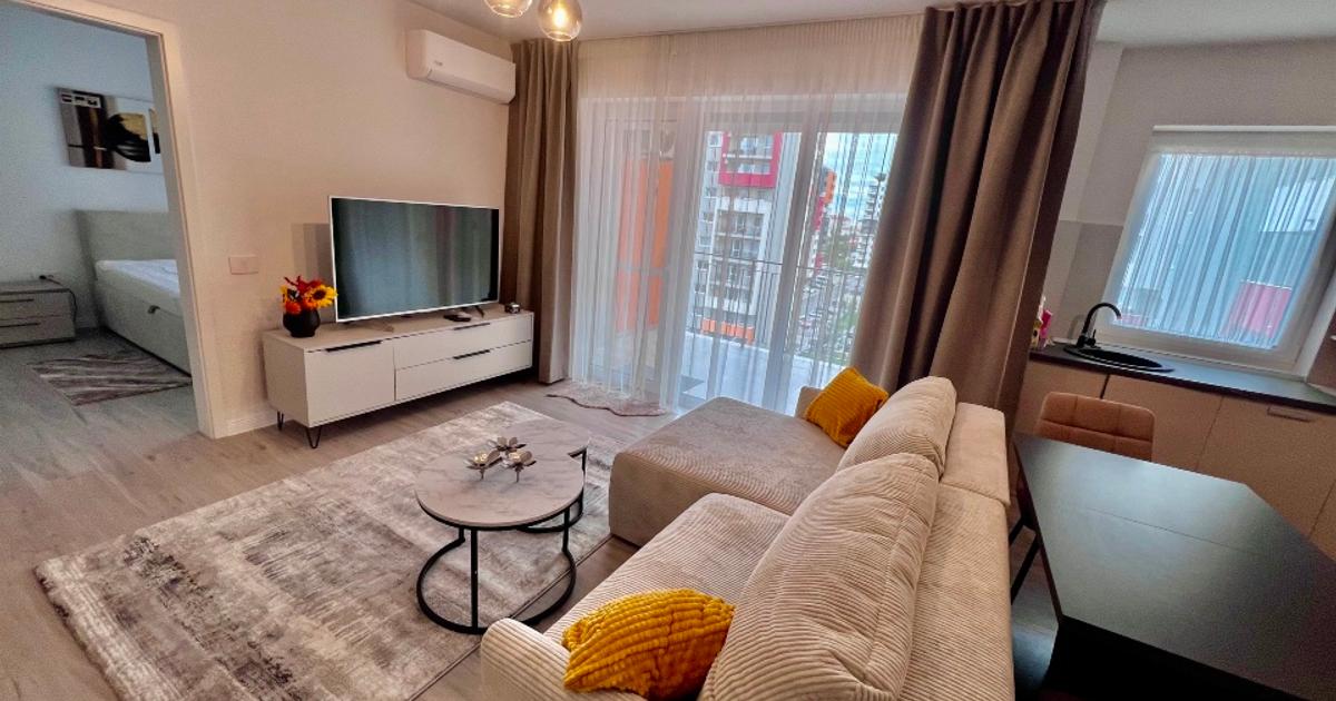 Inchiriez apartament mobilat complet si utilat compus din 2 camere - living cu bucatarie si dormitor cu dressing foarte incapator, baie si balcon mare. In pretul chiriei este inclus si un loc de parcare.