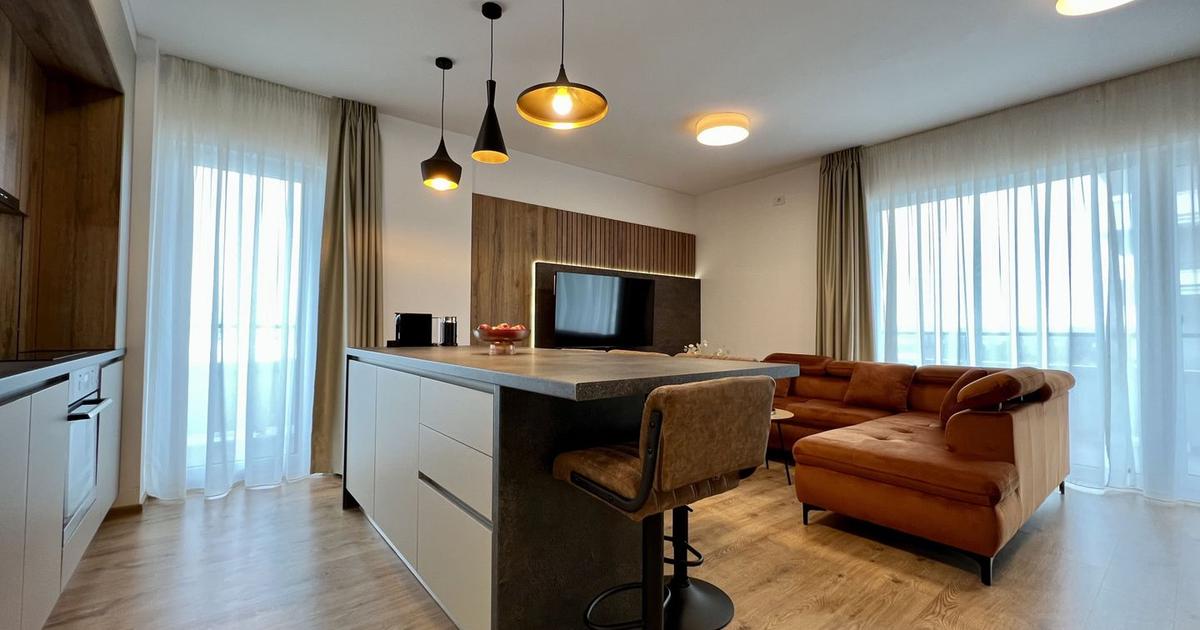 Apartament de lux in Blumana, in Alphaville Arena. Locuinta este de tip smart-home (remote control de la distanta a luminilor, senzori de fum si apa, centrala, video-interfon). Se inchiriaza complet mobilata si utilata, cu dotari premium precum incalzire in pardoseala, semineu electric, insula de bucatarie cu electrocasnice si frigider de vinuri incorporate, smart TVuri, terasa amenajata si mobilata, masina de spalat vase, masina de spalat haine, uscator, s.a. Proprietatea este localizata la etajul 5, intr-un imobil cu 10 etaje, cu vedere frumoasa asupra apusului si a orasului, accesul facandu-se usor cu ajutorul celor 2 lifturi. Apartamentul masoara 50mp utili + 25mp de terasa (vedere pe 2 laturi si acces din toate camerele) si este compus dintr-o camera de zi spatioasa de tip open-space cu bucataria, baie cu cabina de dus, hol si dormitor. In pretul listat sunt incluse o boxa de depozitare la subsol si un loc de parcare suprateran. Pentru decorarea acestei proprietati s-au folosit...