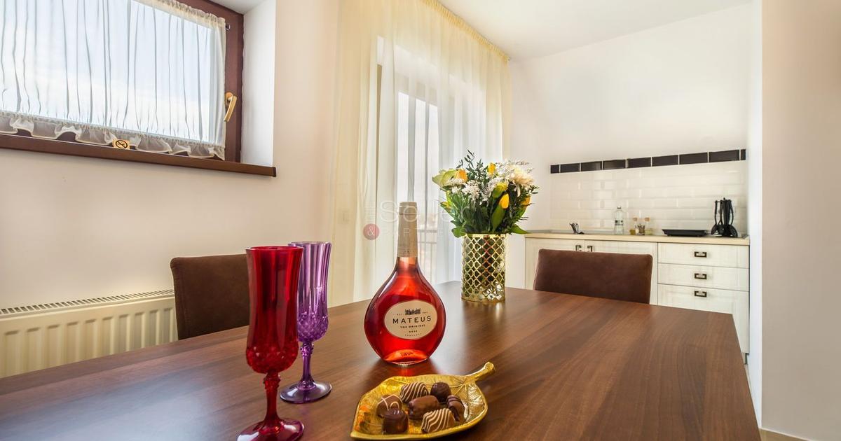 LOCALIZARE: Acest imobil este situat pe Drumul Poienii, la etajul doi al unei vile, in imediata apropiere a Parcului Schaeffler - Livada Postei. COMPARTIMENTARE: - Holul de acces, care face legatura intre toate incaperile; - Doua dormitoare, dintre care unul matrimonial in suprafata de 23 mp, fiecare avand baie proprie; - Zona de zi, ce este luminioasa si spatioasa, avand acces la cea de a treia baie; - Bucataria, inchisa, aceasta fiind mobilata si dotata integral; - Mansarda, ce este amenajata ca zona de noapte, insa poate primi destinatia de zona pentru relaxare si hobby sau spatiu pentru copii; - Toate cele trei bai sunt dotate cu cabina de dus; DOTARI: - centrala termica; - tamplarie PVC, cu geam termopan; - usa metalica; - curte si terasa comune, amenajate; - loc de parcare acoperit, optional. Proprietatea este amenajata intr-un stil elegant, cu materiale premium, aceasta fiind propusa spre inchiriere complet mobilata si utilata. Imo...