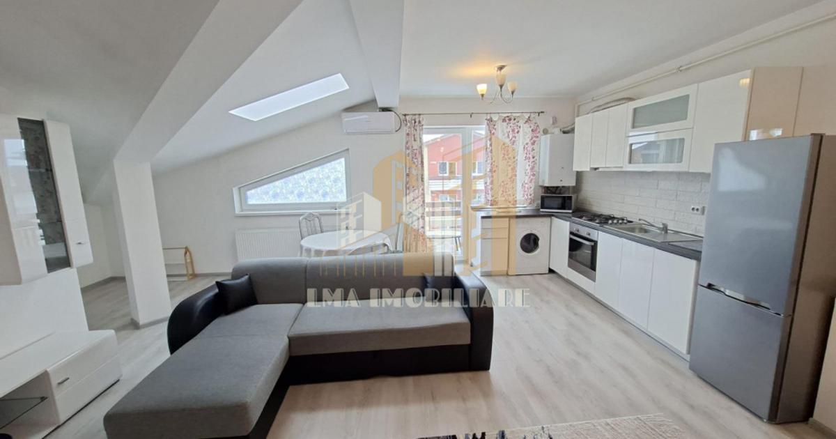 LMA Imobiliare vă prezintă un apartament tip studio situat la mansarda unui bloc dispus P+3+M, constructie 2020. Apartamentul este pozitionat N-V si are urmatoarea decomandare: Zona de acces cu pantofar si cuier Living openspace cu bucataria, dotat cu AC din care avem acces in balcon. Baie cu cada si aerisire naturala. Dormitor cu balcon dedicat. Apartamentul este complet mobilat și utilat. Bucătăria este echipată cu plită pe gaz, cuptor electric, cuptor cu microunde, hotă si combina frigorifica, uscatorul pentru rufe il regasim tot in mobilierul de bucatarie avand loc dedicat.. Baie cu cada si aerisire naturala, masina de spalat rufe. Zona de living dispune de televizor, canapea, masă și patru scaune, masuta de cafea. Dormitorul dotat cu dulap de depozitare, pat matrimonial și noptiere. Loc de parcare inclus in pret. Orientarea ofera lumina naturala pe parcursul zilei , creand ambient placut si luminos. Disponibilitate imediată. Nu se acceptă animale de companie....