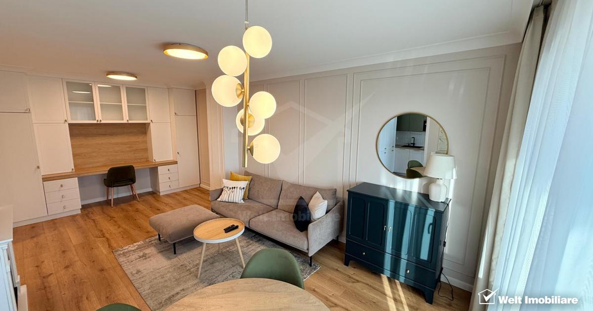 Welt Imobiliare vă propune spre închiriere un apartament premium situat pe strada Plopilor, în ansamblul rezidențial Rozelor Residence (2022), la etajul 8 din 10, într-un imobil modern prevăzut cu două lifturi. Apartamentul are o suprafață utilă de 56 mp, la care se adaugă un balcon generos de 12 mp cu spațiu de depozitare, și este compartimentat în dormitor, living cu bucătărie open space, baie cu cadă și hol. Se închiriază complet mobilat și utilat, cu mobilier realizat la comandă și finisaje premium. Bucătăria este complet echipată, inclusiv cu mașină de spălat vase, iar apartamentul dispune de mașină de spălat haine, încălzire în pardoseală, aer condiționat, Smart TV 4K și șemineu electric. Poziționarea este excelentă, în proximitatea promenadei de pe malul Someșului, a Parcului Iuliu Hațieganu, Parcului Babeș și Parcului Rozelor, cu acces rapid către centrul orașului. Chiria este 900 euro/lună, la care se adaugă utilitățile. Închirierea se realizează pe bază de contract....
