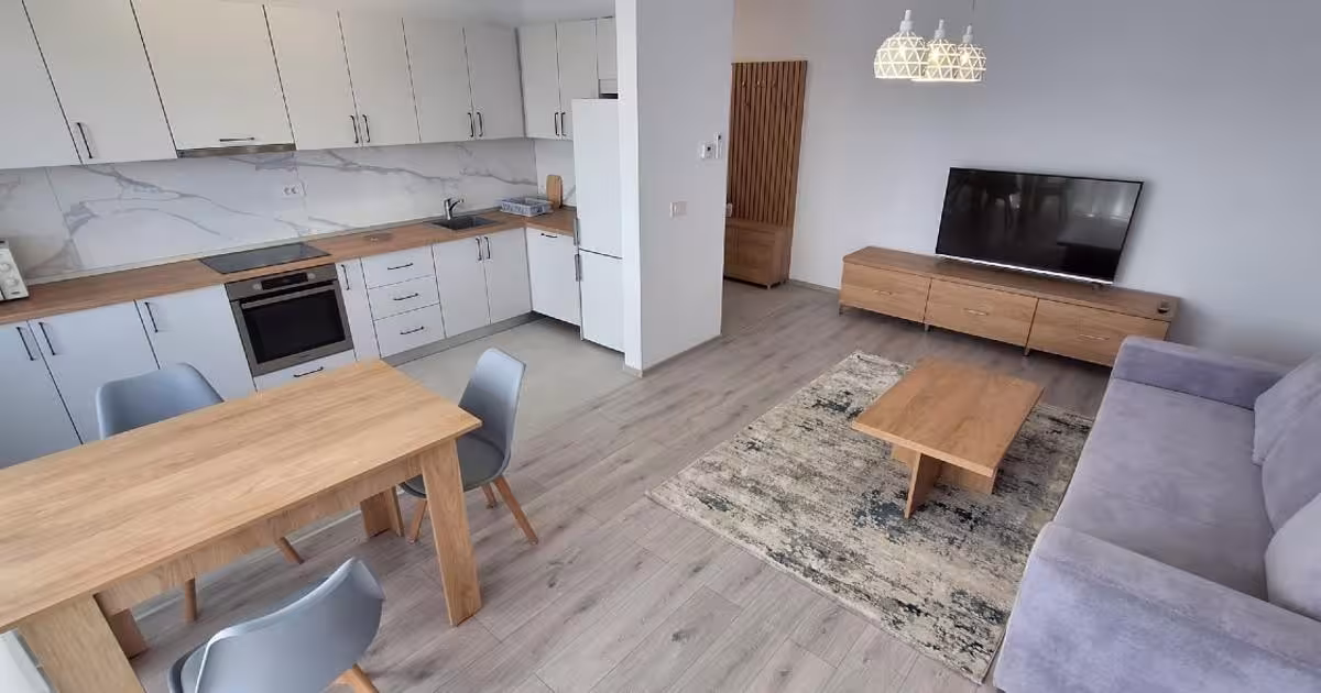 AVA ESTATE va propune spre inchiriere un apartament cu 2 camere, mobilat si utilat lux, situat la etajul 2 intr-un bloc cu 11 etaje. Apartamentul se afla in Complexul Rezidential Iris Armoniei, constructie 2023. Apartamentul are o suprafata utila de 56 mp + 7 m de balcon deschis. Compartimentarea este astfel: - hol de acces - living cu bucatarie open space + balcon - dormitor cu pat matrimonial - bai cu vana Apartamentul se afla la a doua inchiriere. Absolut totul este relativ nou in interior. Dispune de urmatoarele electrocasnice: plita pe gaz, cuptor electric, hota cuptor cu micronde, masina de splat haine, Smart TV, clima. Confortul termic se realizeaza prin intermediul centralei de bloc, prin pardoseala. Apartamentul dispune de parcare subterana inclusa in pretul chiriei! Pretul de inchiriere este de 500 euro + garantie + comisionul agentiei. Daca v-am starnit interesul, va asteptam cu drag la o vizionare. ID AVA68