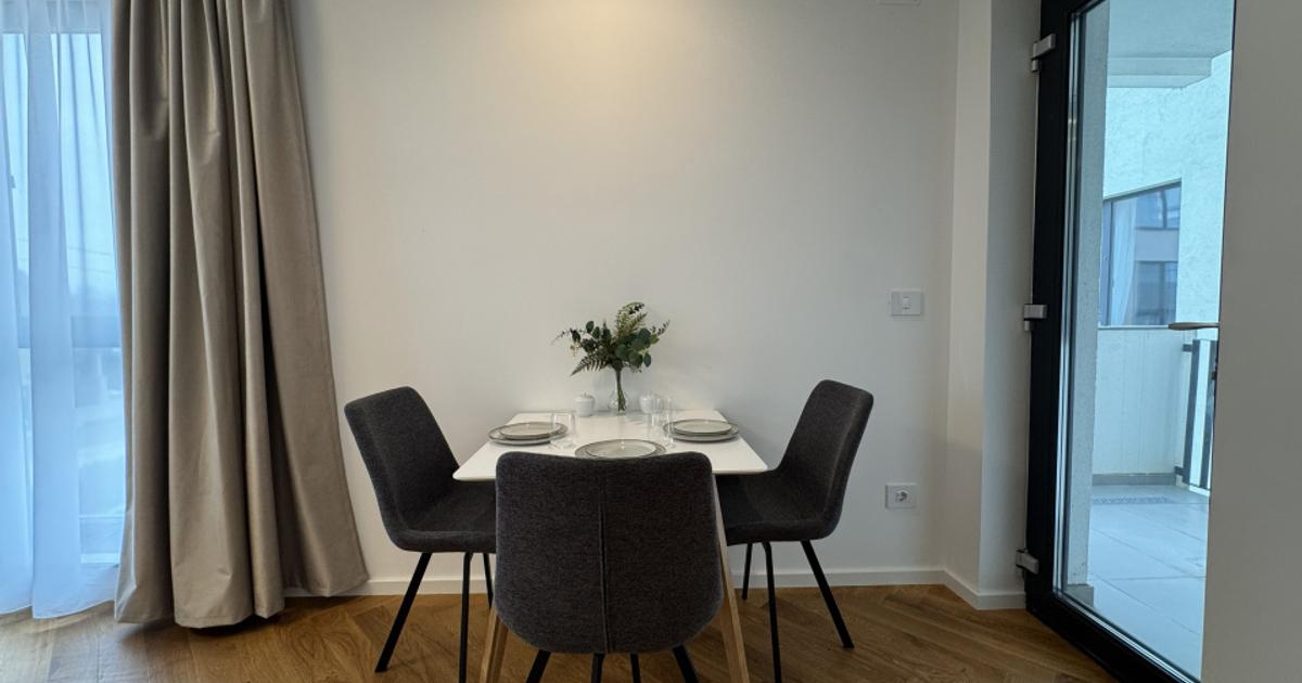 Esti in cautarea unei locuinte care sa imbine perfect designul, functionalitatea si o pozitie privilegiata? Acest apartament modern, elegant si eficient compartimentat, situat in Dumbravita, pe strada Petre Tutea, intr-un imobil nou, la etajul 1, amplasat intr-o zona linistita, dar excelent conectata, ofera combinatia ideala intre accesibilitate, confort, spatiu si eleganta. Este alegerea potrivita pentru un cuplu tanar sau un tanar profesionist care isi doreste o locuinta noua, intr-o zona premium din Dumbravita. Aflat la prima inchiriere, apartamentul este mobilat si utilat complet, cu accent pe calitate, functionalitate si un design modern, atent ales, oferind un standard de viata ridicat. - Suprafata utila: 57,70 mp - Balcon: 3,9 mp - Loc de parcare: inclus - Prima inchiriere Compartimentare: hol, living cu iesire pe balcon, bucatarie, dormitor, baie cu dus, debara, balcon. Dotari: mobilat si utilat nou, parchet din lemn masiv, centrala termica proprie cu calorife...