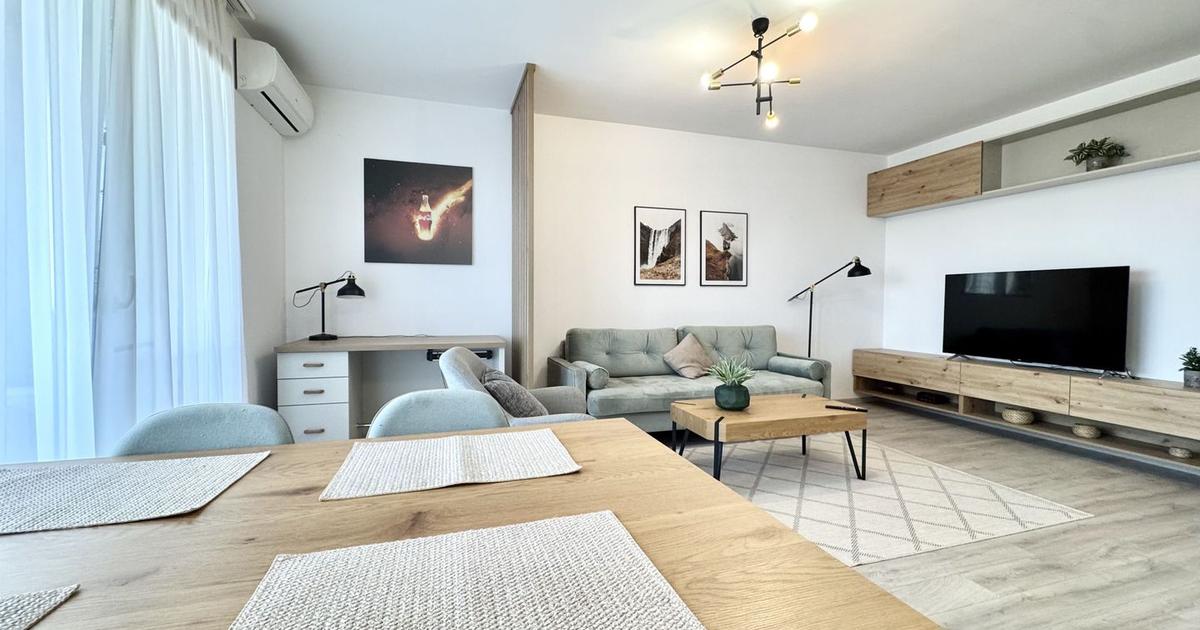 Va propunem, la prima închiriere, un apartament cu 2 camere, decomandat, situat în zona de Nord - Calea Aradului, complex rezidențial Iris, etaj 3, structurat după cum urmează: - antreu - living room - bucatarie mobilata și utilată - dormitor - hol tranzit - baie - terasa Apartamentul dispune de finisaje moderne și oferă toate utilitățile. Incalzirea se realizează în pardoseala, cu ajutorul centralei proprii pe gaz. Pe timpul verii confortul este asigurat de aerul condiționat. Accesul este facil către mijloace de transport, scoli și centre comerciale. Apartamentul se închiriază complet mobilat și utilat. Este inclus in preț si un loc de parcare subteran. Pretul de închiriere este 550 Euro/ luna. Se solicita si o garanție de buna execuție contractuală in cuantumul unei chirii lunare.
