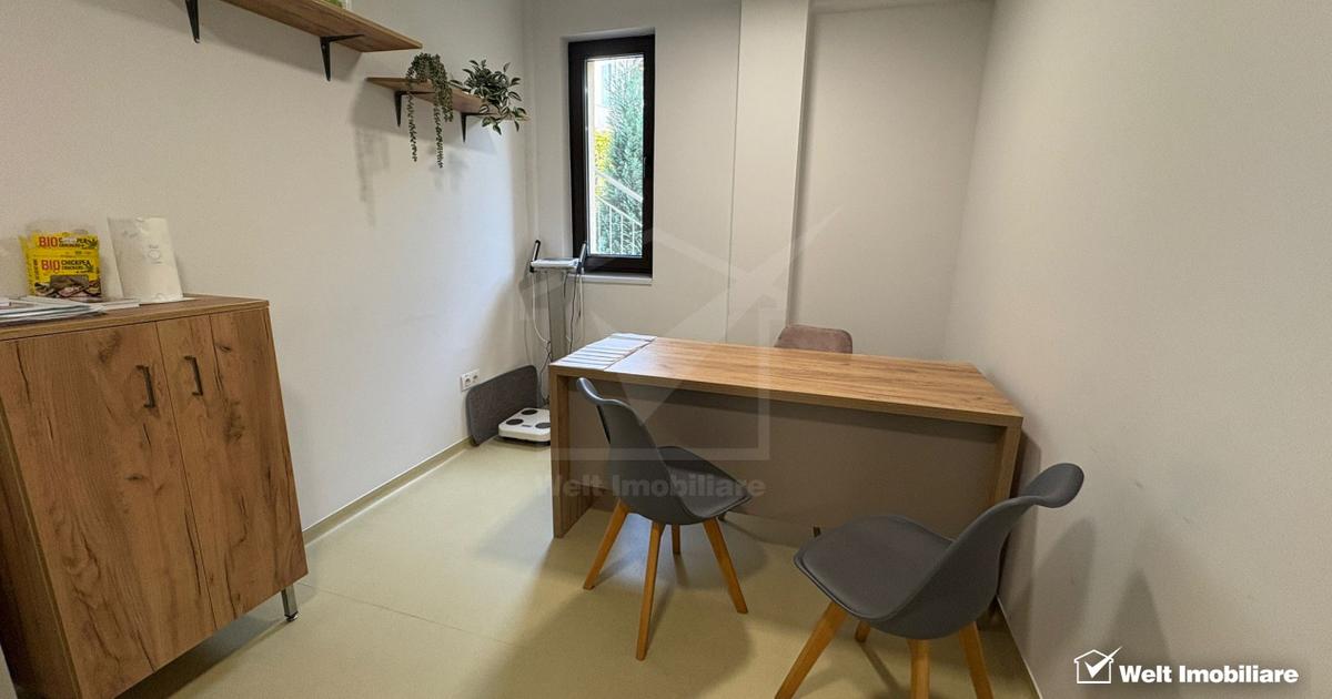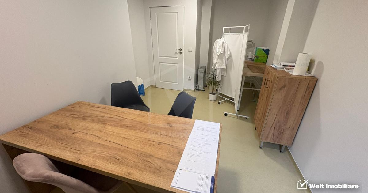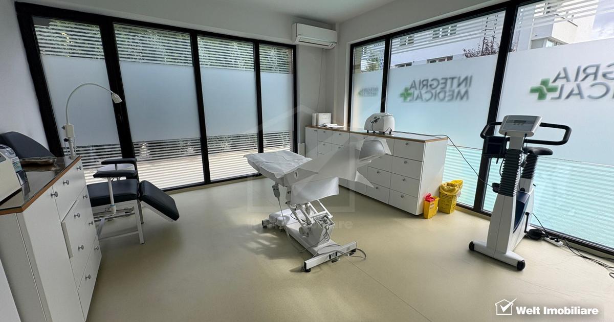 Welt va propune spre inchiriere cabinet și sală de tratamente sau proceduri estetice de închiriat – în clinică medicală autorizată, lângă Parcul Central, Centru, Cluj-Napoca Locație: zonă centrală, lângă Parcul Central, Cluj-Napoca Disponibilitate: închiriere parțială în cadrul unei clinici existente Descriere: Se oferă spre închiriere un cabinet și o sală de tratament complet amenajate, ideale pentru activități medicale. După următorul program: Luni Marți 8-14.00 Miercuri-Vineri 8-20 Spațiul deține toate autorizatiile necesare funcționării unei activitati medicale și face parte dintr-o clinică medicală complet funcțională, cu: recepție și sală de așteptare grupuri sanitare spații anexe (zonă depozitare / boxă curățenie) vestiare personal Detalii: Suprafață utilă: cabinet 13 mp și sala tratamente 23 mp + acces la spațiile comune aproximativ 90 mp Utilități incluse: internet, climatizare, pază și supraveghere video Unele se repetă, dar le comasați...