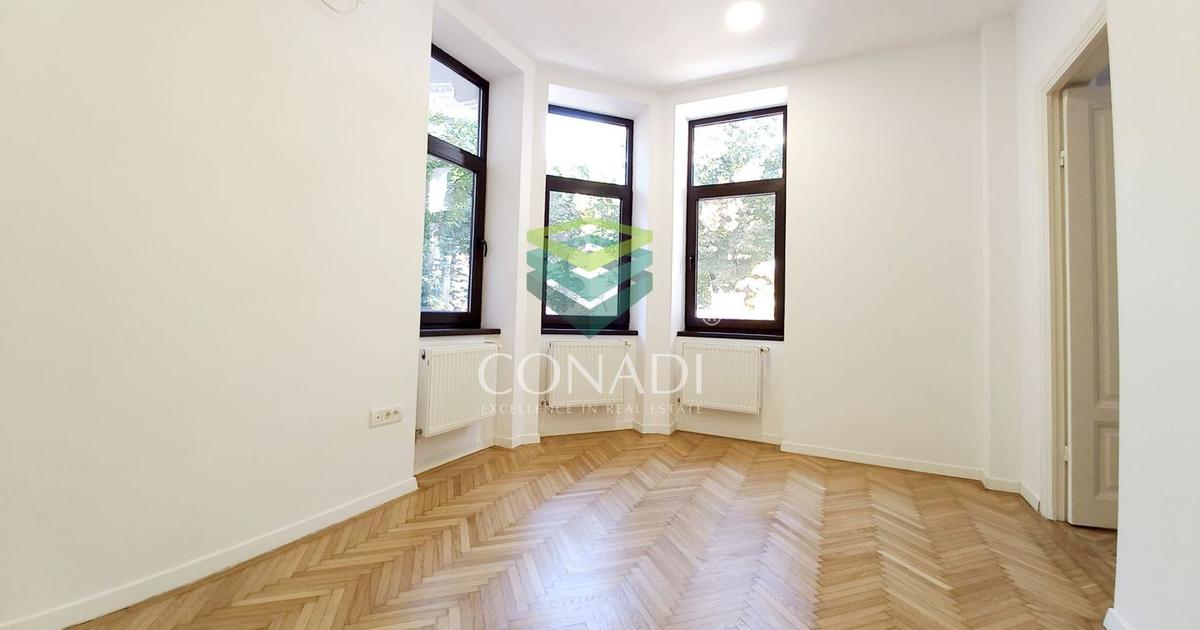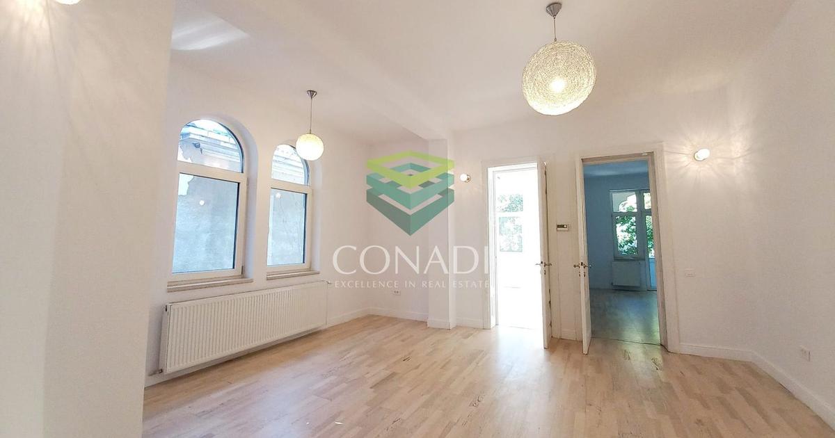 Vilă interbelică restaurată, disponibilă pentru închiriere în cartierul Dorobanți Capitale. Proprietatea se remarcă prin eleganța arhitecturii, compartimentarea funcțională și poziționarea excelentă – disponibilă pentru închiriere exclusiv ca spațiu de birouri. Caracteristici generale • Suprafață utilă: 360 mp • Regim de înălțime: D+P+2E • Nemobilaă, cu două bucătării complet echipate Compartimentare • Demisol (50 mp): open space, 1 baie, cameră tehnică • Parter (100 mp): 3 camere, hol reprezentativ, 2 băi • Etaj 1 (100 mp): 3 camere, hol tip living, 2 băi, 2 balcoane • Etaj 2 (110 mp): open space, 1 baie, terasă cu vedere deschisă Dotări si facilități • Curte • Aer condiționat • Centrală termică • Conectivitate prin fibră optică • Sistem de alarmă și videointerfon Locație Amplasată în Dorobanți Capitale, una dintre cele mai frumoase și apreciate zone din București, vila beneficiază de acces direct către Bd. Aviatorilor și Calea Dorobanți. În vecinătate se află restaur...