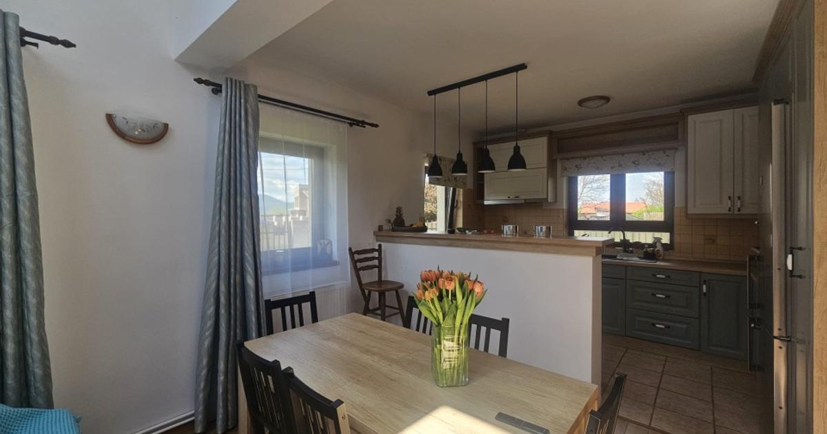 PARTICULAR Închiriez casă parter, tip bungalow, singură în curte, 110 mp utili pe teren de 440 mp, situată în zona Livada 1, Ghimbav, aproape de Brașov. Caracteristici: • 2 dormitoare spațioase • 2 băi: una complet utilată (cadă + duș), una de serviciu (WC + lavoar) • Living open space, luminos, cu bucătărie complet utilată • Terasă mare 30 mp în spate + terasă 7 mp la intrare • Cameră tehnică cu mașină de spălat și uscător • Parcare în curte + posibilitate parcare în față • Full mobilată și utilată: frigider, mașină de spălat vase, electrocasnice complete • Construcție 2016, foarte bine întreținută Avantaje: • Intimitate și liniște, casă singură în curte • Curte mare, ideală pentru relaxare și grătar • Terase generoase pentru momente în aer liber • Mobilier și utilități de calitate Condiții: • Se închiriază mobilată • Durată minimă 12 luni • Garanție 2 luni • Preferabil familie sau cuplu stabil EXCLUS INTERMEDIARI !!!