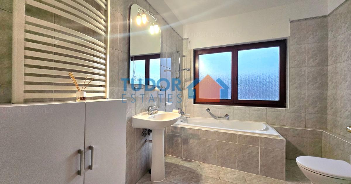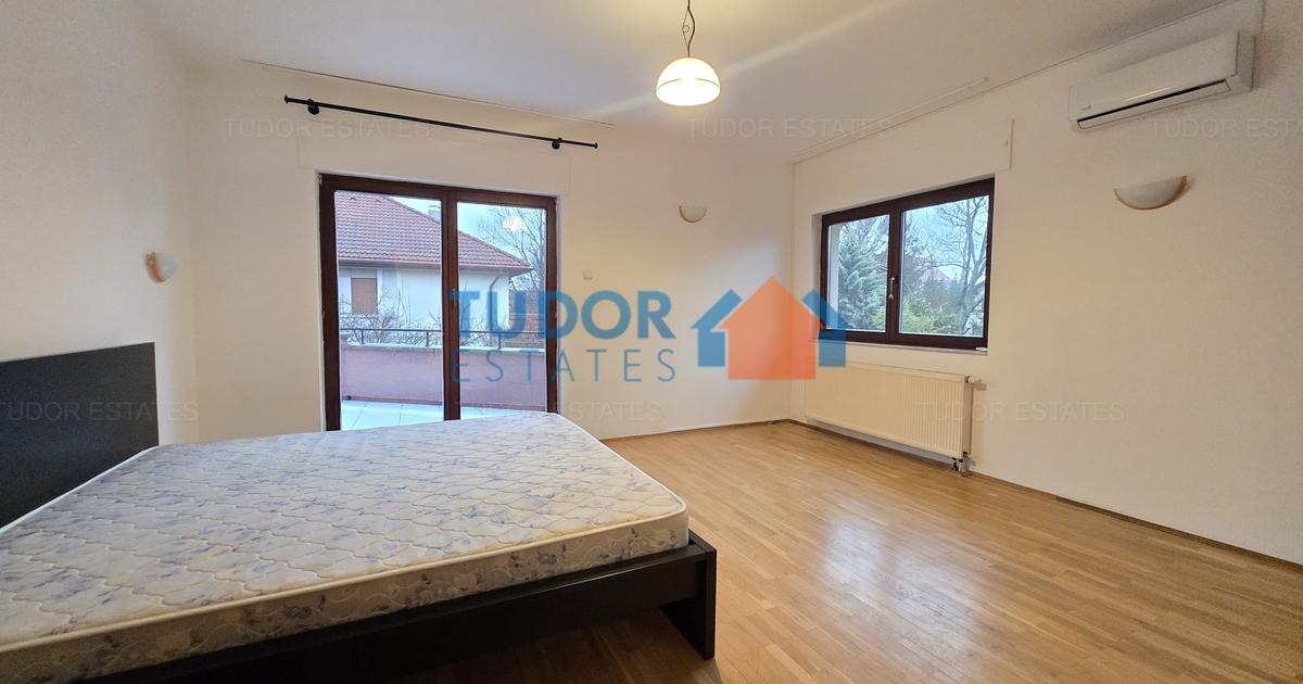 This spacious villa is located in a compound on Pipera Tunari Boulevard. The property is located at walking distance from the American International School and close to Mega Image Supermarket at just a few minutes away. The neighborhood is quiet and safe, perfect for expatriate families relocating in Bucharest. It is the ideal place for a family with children who likes to socialize. Great family home with four bedrooms and a huge garden of 800 s.q.m. Equipped with air conditioning units, heating system and connections for TV cable and internet. In the garden, there is a barbecue area, perfect for a dinner in the garden with family or friends. In the compound there is a common swimming pool were you can enjoy hot summer days with family and friends.