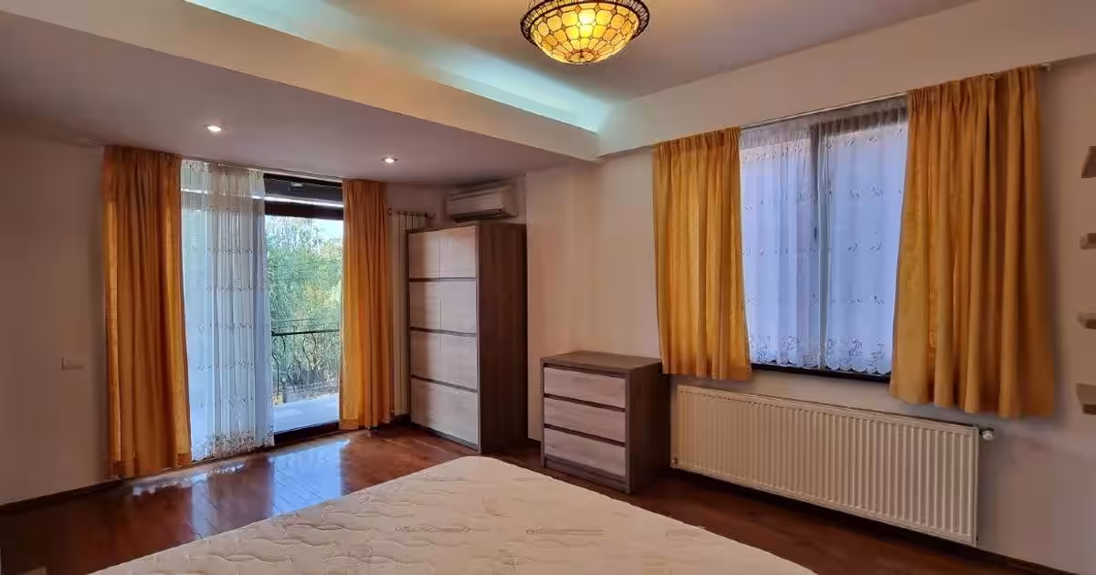 Vila se afla in cartierul Baneasa-lac, pe malul lacului, zona vile, langa Petrom City, p+2E, 350 mp, complet mobilata si utilata, 4 dormitoare, dresing, living, dining, bucatarie Siemens, 4 bai, jacuzzi, sauna, semineu, gradina amenajata, alarma, paza asigurata, climatizare Daikin, amenajari si dotari premium. https://my.matterport.com/show/?m=Zrcrf9mBYec