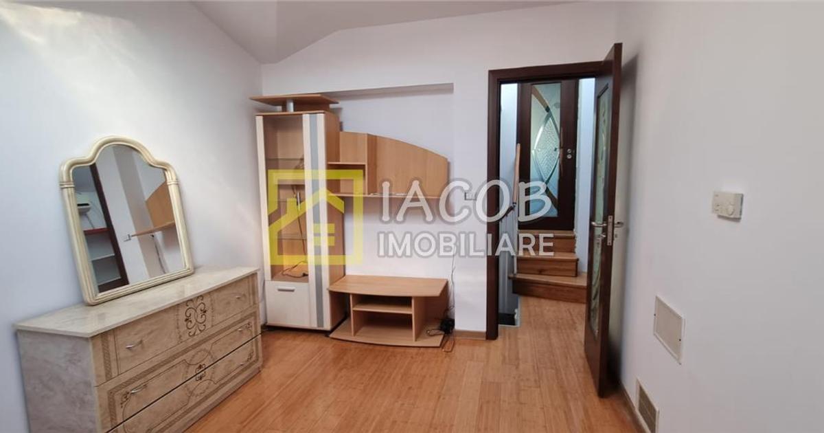 Vila duplex de inchiriere in zona Centrala - Bacau, avand 4 camere: 3 dormitoare, doua bai, o bucatarie deschisa si un balcon. Suprafata totala construita 120 mp, suprafata utila 110 mp si suprafata teren 100 mp. Imobilul are amprenta la sol de 80 mp, curtea libera. Are structura din bca, este construita in anul 2000 si renovata in 2022. Dotari : acoperis: tabla; calorifere: da; ferestre casa: term. pvc; incalzire casa: centrala termica; izolatii termice: exterior; mobilat: partial, stare buna; pereti: faianta, lavabil; plansee: beton armat; podele: parchet, gresie; structura casa: bca. Pretabil locuinta, birou, locuinta birou. ID intern: II153.