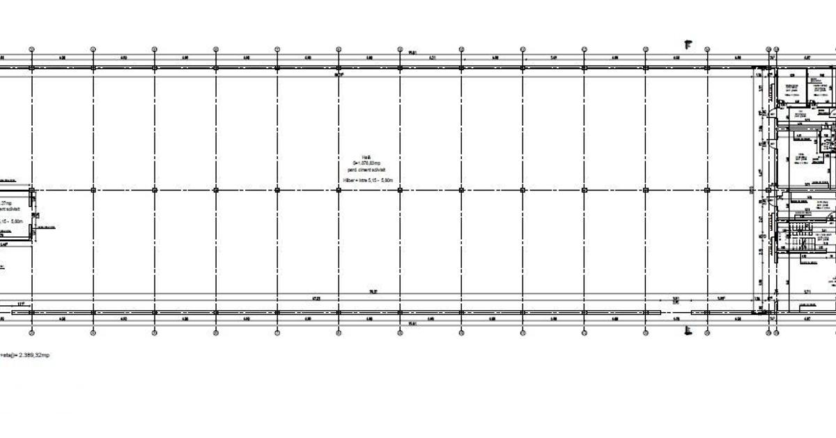 Producție sau Depozitare, propunem hala industrială spre închiriere, acest imobil beneficiază de o poziție strategica industrială acess Tir, avand și compartimentare parter pentru vestiar, grup sanitar Bărbați + Femeie, - Suprafața utila Hala: 2210 mp - Suprafața construită: 2327 mp - Volum: 16.085 m3 - Înălțime utila pardosea/grinta 5,15 mt - Inaltima utila pardosea/tavan 5,80 mt - Lățime între stâlp: 6 mt - Lățime hala 23,73 mt - Încălzite ventilată - Pardosea hala Ciment Scivislit - Grup sanitar: Greșie și faianța Parter: (Vezi releveu Atașat) - Vestiar bărbați: 10,50 mp - Grup Sanitar 4 + Dușuri bărbați 4 - Vestiat Femeie: 10,39 mp - Grup Sanitar 4 + Dușuri Femeie 4 - Birou 28,80 mp - Hol acces trafic intens - Acces scara spre birouri etaj Etaj: (Vezi releveu Atașat) - 5 birouri din care 2 au vedere spre hala și 3 birouri spre strada (curte) - Grup sanitar Bărbați - Grup sanitar Femeie - Suprafața construită: 230,61 mp - Suprafața Utilia: 179,0...