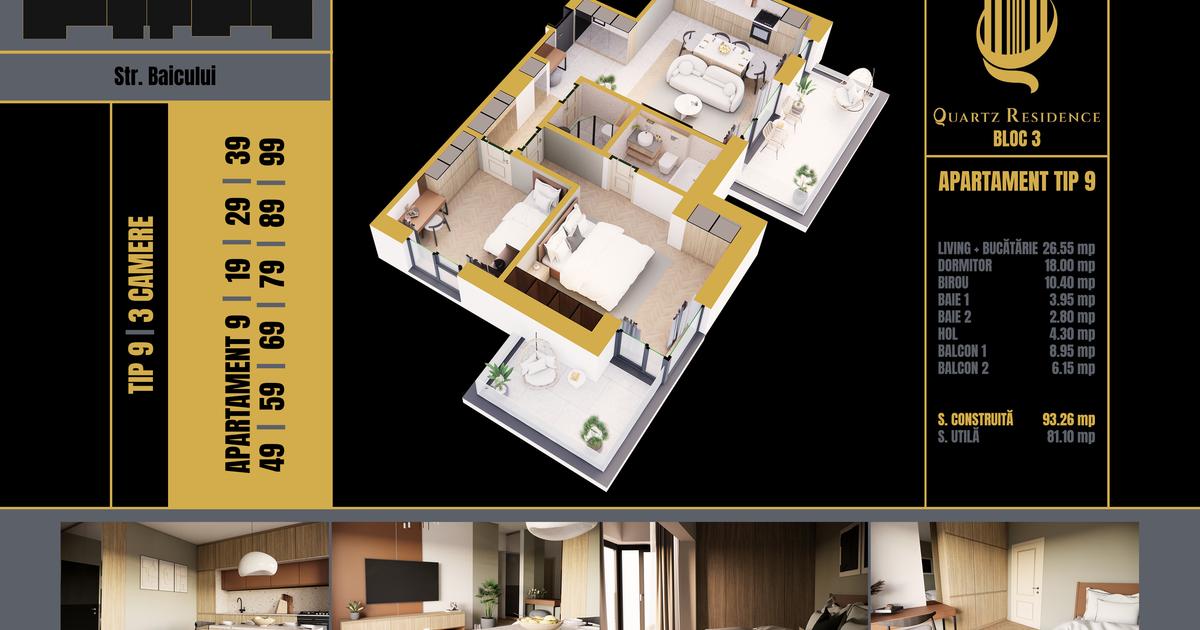 Apartament cu 3 camere elegant ,realizat cu materiale si finisaje premium . Ofera : Spatiu generos ,lumina naturala ,confort termic ,Priveliste deschisa . -doua lifturi -incalzire prin pardoseala -Termopane tripan Salamander -Parcare