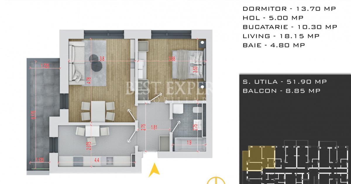 Oferta noastra completa o gasiti pe site-ul www.atenaresidence.ro Birou vanzari dezvoltator Titan-Pallady Comision 0% Pret proprietate: -86.064 Euro + TVA pentru un avans de 90% la antecontract -89.102 Euro + TVA pentru un avans de 50 % la antecontract -92.140 Euro + TVA pentru un avans de 15 % la antecontract PROMO:Parcare gratuita la avans 90% -3.500 Euro discount la avans 50% Pozitionare : zona Theodor Pallady Tip proprietate - 2 camere decomandate Tip imobil - D+P+3 etaje Total unitati ansamblu - 81unitati Termen Finalizare - Septembrie 2026 Suprafata utila - 51.91mp utili +8.85 mp balcon, total 60.76 mp utili Utilitati publice - curent, apa, canalizare, gaz Distanta mijloace de transport in comun: - 1.5 km metrou Nicolae Teclu (aproximativ 16 minute) Dotari -centrala proprie -incalzire in pardoseala -vas toaleta sistem gheberit -finisaje la alegere Sediu: Drumul Gura Crivatului, nr. 4-22, Sector 3 Waze: Best...
