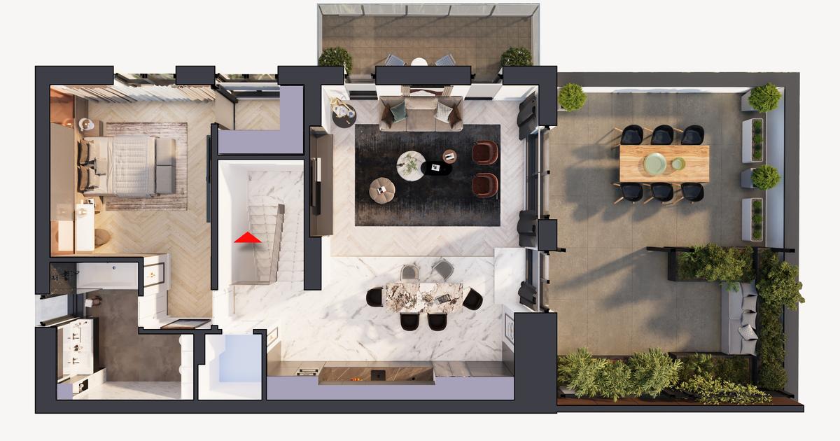 Vă invităm să descoperiți HILS Titanium, un ansamblu rezidențial remarcabil, potrivit pentru cei care doresc să își înceapă viața independentă sau să investească într-un mediu urban de calitate superioară. Acest Duplex Premium tip 1 oferă spații generoase, cu o scară interioară ce adaugă eleganță și funcționalitate. La nivelul unu găsești un hol cu spațiu de depozitare, un dormitoar cu dressing propriu si o baie; iar la nivelul doi se află un spațiu multifuncțional cu zonă de zi și bucătărie modernă cu grup sanitar si balcon; si un dormitor cu baie și dressing, împreună cu o terasă impresionantă de 46.04 mp. Cu ferestre mari și confortul de a fi deasupra orașului, Duplexul oferă perspective impresionante și lumină naturală. Este o alegere de lux pentru...