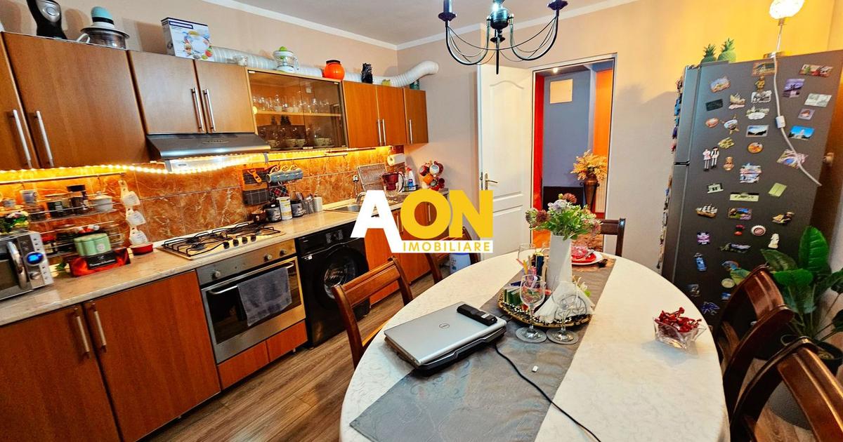 AON Imobiliare vă propune spre vânzare un apartament cu 4 camere situat într-o locație de top din Alba Iulia, zona Ultracentrală (Mercur City Center, Primărie, Piața Agroalimentară). Proprietatea este poziționată la etajul 1 al unui bloc cu 4 etaje, o construcție solidă finalizată în anul 1988. Deși este situat în inima orașului, apartamentul beneficiază de multă liniște, fiind retras față de agitația străzii principale – o combinație rară între poziționarea premium și confortul fonic. Detalii Spațiu și Compartimentare: • Suprafață utilă: 87 mp de spațiu bine compartimentat. • Structură: Living, bucătărie, 3 dormitoare, baie și hol. • Terase: Acces exclusiv pe două terase spațioase, cu o suprafață totală de 25 mp, ideale pentru relaxare. • Depozitare: La subsolul imobilului sunt incluse 2 încăperi pentru depozitare, însumând 20 mp. Dotări și Finisaje: Locuința se vinde complet mobilată și utilată, fiind gata pentru mutare imediată. Printre dotări se numără: • Centrală termică p...