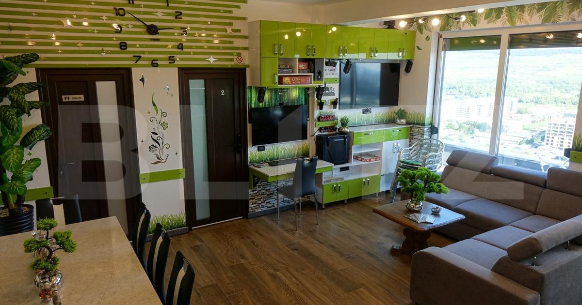 Blitz va propune un penthouse deosebit, situat la etajul 6 (etaj retras) al unui complex rezidential nou, langa VIVO Mall, Cluj-Napoca. Cu o suprafata totala de 77,5 mp, acest apartament modern va ofera spatiu si confort. Complet mobilat si utilat la cheie, este gata sa va ofere tot ce aveti nevoie pentru un stil de viata modern. Elemente cheie: Panorama spectaculoasa care va va taia rasuflarea, datorita terasei generoase de 13,5 mp care se intinde pe toata lungimea apartamentului 3 camere luminoase, perfect compartimentate 2 bai moderne Parcare securizata in garajul subteran, accesibila la doar cativa pasi de scari si lift la pretul de 10000 euro Acest penthouse este locuinta perfecta pentru cei care isi doresc sa traiasca intr-o zona dinamica, dar totodata sa se bucure de linistea si intimitatea oferite de un apartament retras, cu o vedere impresionanta. Cod oferta / ID BLITZ: P134420
