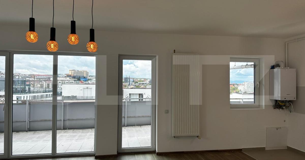 Blitz va propune spre vanzare un apartament cu 3 camere de tip penthouse, semidecomandat, situat la etajul 8 al unui imobil cu 8 niveluri, in cartierul Buna Ziua, in imediata apropiere a magazinului Lidl. Suprafata utila: 82 mp si Compartimentare: Living cu bucatarie open-space, 2 Dormitoare, 2 Bai, Hol si o Terasa de 46 mp cu view superb. Finisaje si dotari: Finisaje moderne, Incalzire prin centrala termica proprie, Geamuri termopan cu profil PVC, Pereti zugraviti cu vopsea lavabila si cele 2 bai complet utilate. Se vinde finisat si nemobilat, ideal pentru o familie, un cuplu tanar sau ca investitie excelenta in vederea inchirierii, datorita pozitionarii strategice. Locatie: Zona este linistita, cu multe spatii verzi si acces facil la: Mijloace de transport in comun Magazine, farmacii Unitati de invatamant Parcuri si Acces rapid catre centrul orasului. Apartamentul dispune de un loc de parcare in subteran la pretul de 15000 Euro + TVA iar la cerere se mai pot achizit...