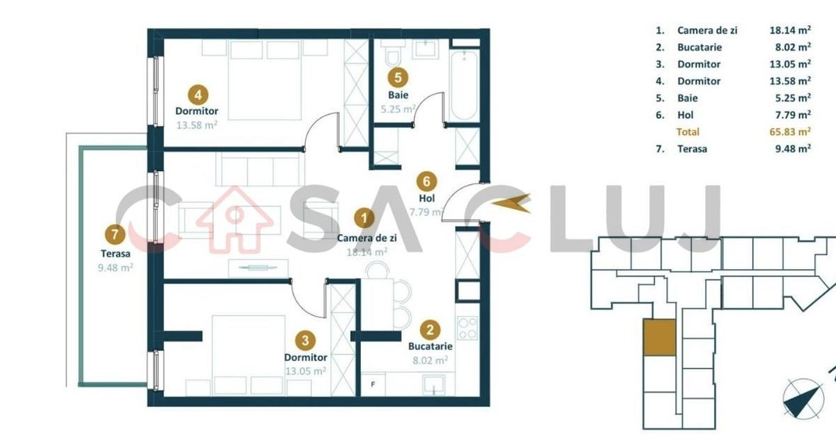 Vă propunem spre vânzare un apartament modern, nemobilat, situat într-un bloc nou, într-o zonă liniștită și bine conectată din Cluj-Napoca – Cartierul intre lacuri la 6 minute de Iulius Mall Suprafață utilă: 65,83 mp Terasă: 9,48 mp – ideală pentru relaxare sau amenajare personalizată Orientare: sud-vest – lumină naturală din plin pe parcursul zilei Compartimentare și dotări: 2 dormitoare spațioase și luminoase Bucătărie open space cu camera de zi 1 baie Finisaje moderne: parchet laminat, gresie ceramică, zugrăveli în culori neutre Încălzire prin pardoseală – cu centrala termica proprie Facilități suplimentare: Posibilitate de achiziționare loc de parcare în subteran cu 12.000 euro La doar 6 minute de mers pe jos până la stația de autobuz Zonă liniștită, cu acces facil către toate punctele de interes ale orașuluiw Contactați-ne pentru mai multe informații sau pentru a programa o vizionare! Un apartament nou, luminos și eficient din punct de vedere en...