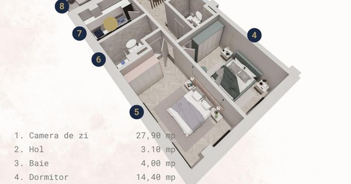 Descoperă un apartament de 3 camere, situat la etaj intermediar, într-un imobil nou, finalizat, amplasat într-o zonă liniștită din Constanța – Strada Berlin nr. 5. Cu o suprafață utilă de 77,06 mp și un balcon generos de 8,5 mp, proprietatea oferă un total de 86,10 mp, inteligent compartimentați pentru confort și funcționalitate. Se vinde complet finisat, la cheie, cu materiale atent selecționate și un standard ridicat de execuție. În plus, prețul include un loc de parcare situat la nivelul parterului – acoperit sau exterior, în funcție de disponibilitate. Apartamentul oferă: • Living spațios și luminos, cu acces direct pe balcon • Bucătărie închisă, cu spațiu de depozitare optimizat • Două dormitoare confortabile • Două băi moderne, complet echipate • Finisaje premium, centrală proprie și încălzire în pardoseală Imobilul are un regim redus de înălțime (P+4+etaj retras), cu doar 12 apartamente, acces securizat și o atmosferă intimă, ideală pentru un stil de viață...