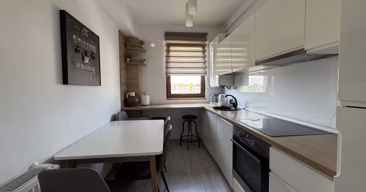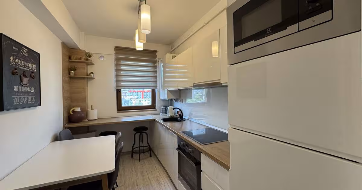 Apartament cu 2 camere, situat intr-un bloc nou, intr-una dintre cele mai cautate zone din Iasi – Palas, pe strada George Emil Palade. Suprafata totala utila este de aproximativ 55.5 mp, din care 4,23 mp balcon. Proprietatea este amplasata intr-un imobil modern, cu acces securizat. Apartamentul beneficiaza de o terasa generoasa, cu vedere deschisa, oferind un plus de confort si functionalitate. Se vinde complet mobilat si utilat, exact asa cum se prezinta in poze, fiind pregatit pentru utilizare imediata sau pentru exploatare in scop investitional. Amplasarea in imediata proximitate a Palas Mall si a centrului orasului asigura o cerere constanta pentru inchiriere si un potential solid de apreciere in timp, ceea ce face ca acest apartament sa reprezinte o oportunitate foarte buna de investitie imobiliara. In pretul apartamentului sunt incluse: - Mobilier complet - Electrocasnice si dotari interioare Informatii suplimentare: - Loc de parcare privat, cu acces prin bar...