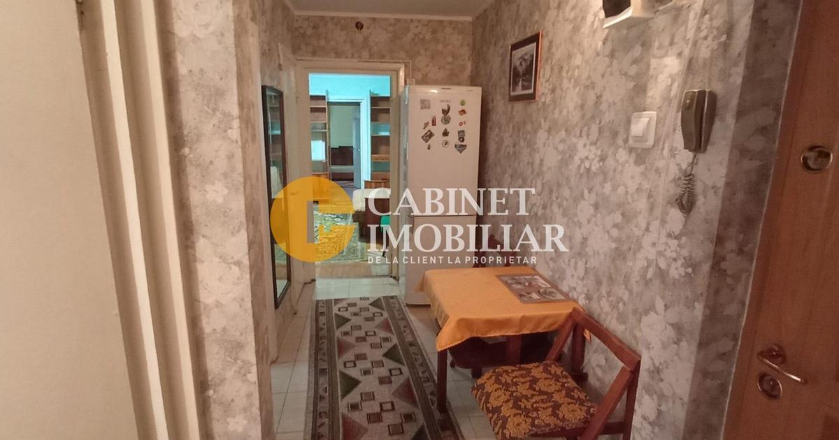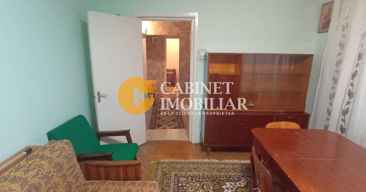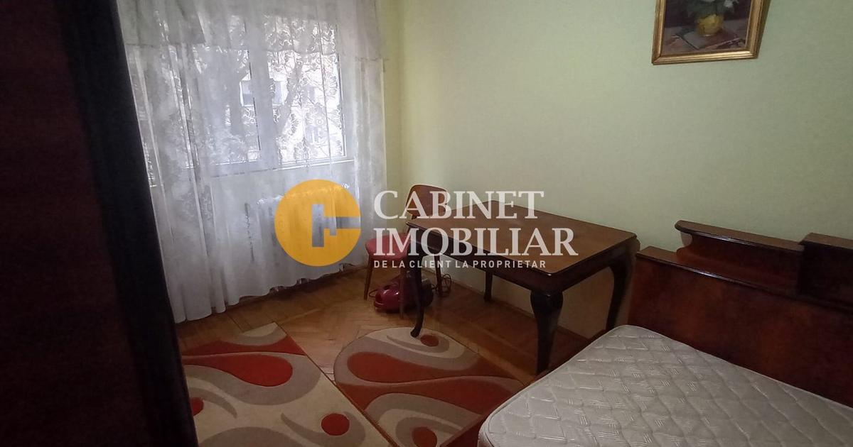 Apartament 3 camere, situat intr-un bloc fara risc seismic, etajul 3 din 4, scara foarte curata, interfon. Zona este foarte linistita, cu multa verdeata, acces facil la mijloacele de transport in comun, scoli, gradinite, supermarketuri, etc. Compartimentare: - hol mare la intrare - debara 1 - dormitor 1 - bucatarie semimobilata, cu debara 2 - debara 3 ( unde e centrala termica) - living cu iesire in balcon - hol 2 - baie cu geam - debara 4 - dormitor 2. Particularitati : - geamurile sunt din pvc , termopan - centrala termica - usi interioare din mdf - parchet din lemn - balcon inchis cu pvc - gresie pe holuri. Apartamentul este LIBER, actele in regula.