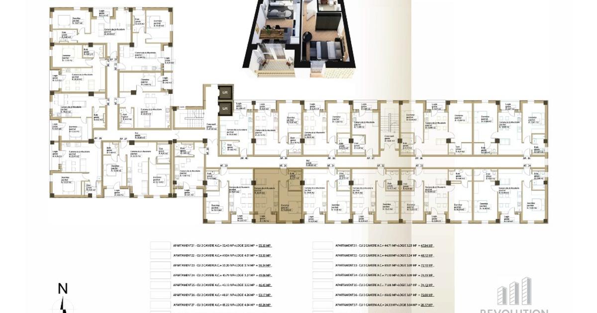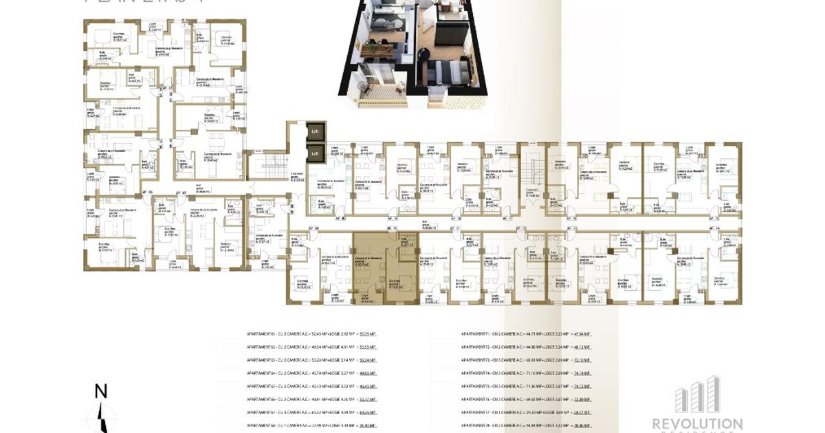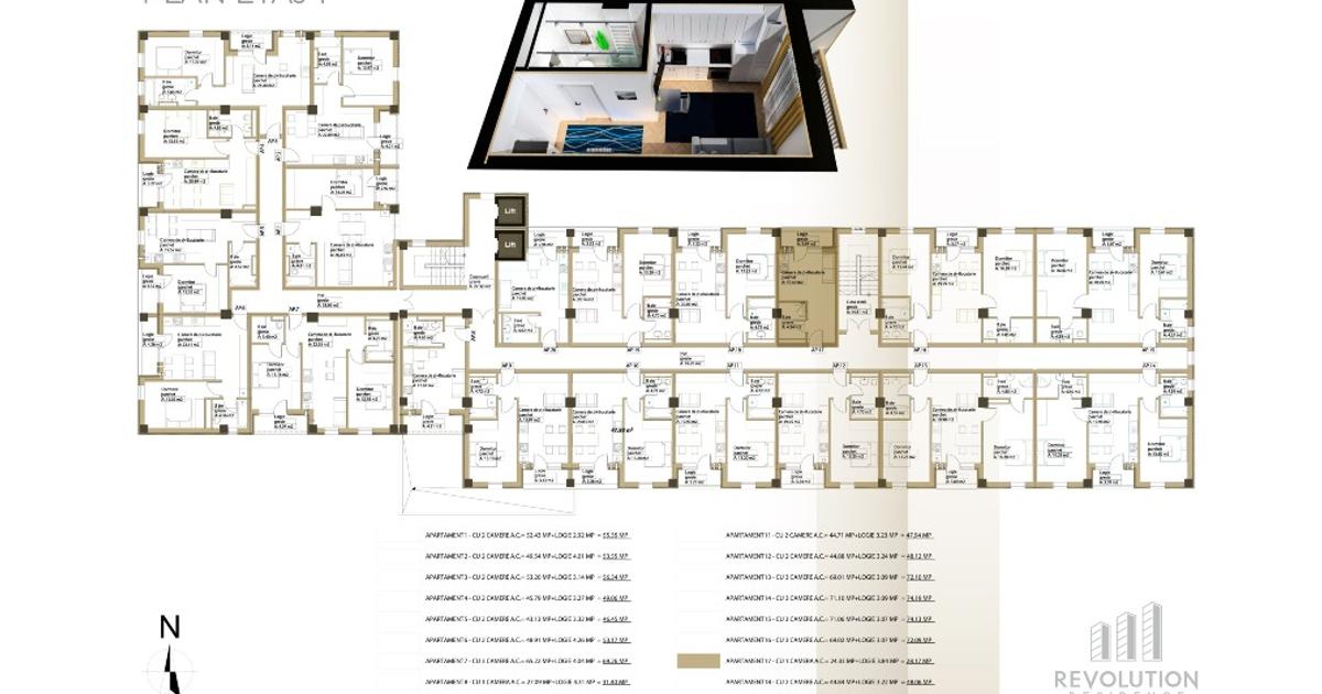 NEW! Descopera cel mai nou complex rezidential REVOLUTION ELITE, situat pe bdul. Republicii 115 din Baia Mare, un proiect marca Revolution Residence. Va propunem spre vanzare apartamente cu 2 camere, avand suprafete cuprinse intre 43.13 mpc si 53.2 mpc, plus terasa aferenta cu suprafata cuprinsa intre 3.14 mpc si 3.32 mpc. Achizitioneaza un apartament cu 2 camere si beneficiezi de design gratuit pentru amenajarea camerei de baie. Detalii proiect: