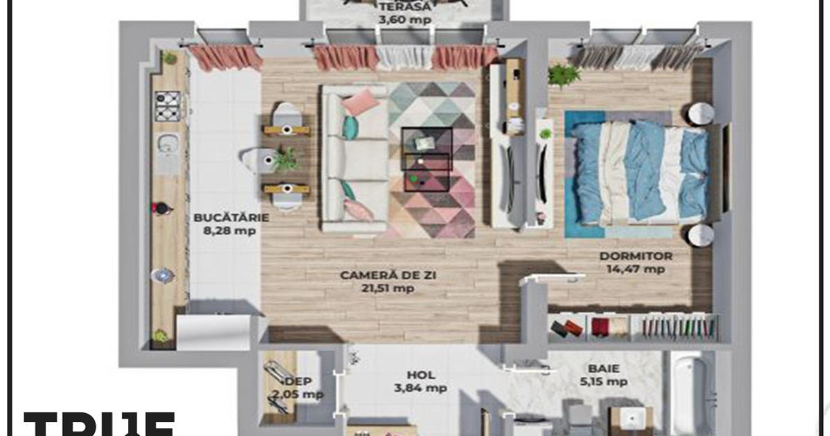 True Imobiliare îți propune achiziția unui apartament cu 2 camere de 55.3m? utili + balcon 3.6m? , în cadrul complexului Maurer Residence din Târgu Mureș. De ce să îți cumperi un apartament la Maurer Residence Târgu Mureș? Vezi VIDEO: truetravel.eu/apartamenteMaurerResidence Configurație: - 1 living - 21.51m? - 1 dormitor - 14.47m? - 1 bucătărie - 8.28m? - 1 depozitare - 2.05m? - 1 baie - 5.15m? - 1 hol - 3.84m? - 1 balcon - 3.60m? Specificații: - Apartamentele se predau finisate la cheie cu următoarele: parchet, gresie, faianță, centrala termică, termostat, termopane, uși interioare, usă metalică (antefracție), istalații electrice, termice și sanitare, lift, zugrăvit cu lavabilă albă, izolație termică, cu toate utilitățile conectate: apa, gaz, curent, canalizare având contorizare s...