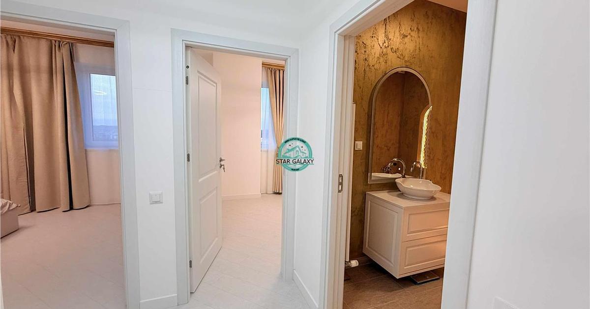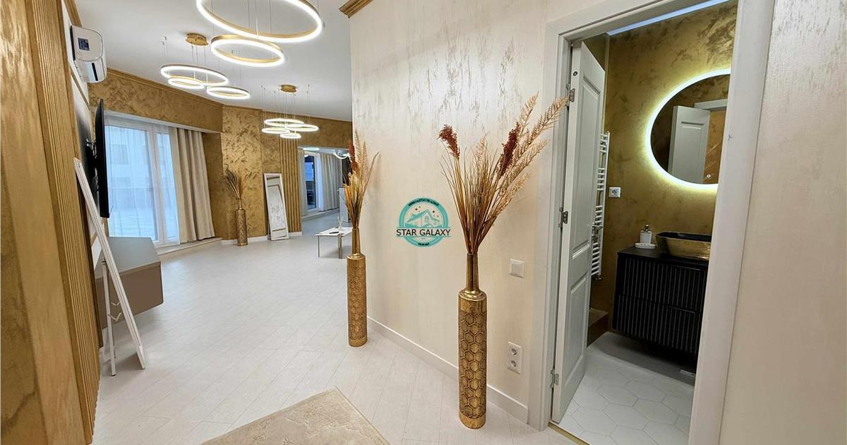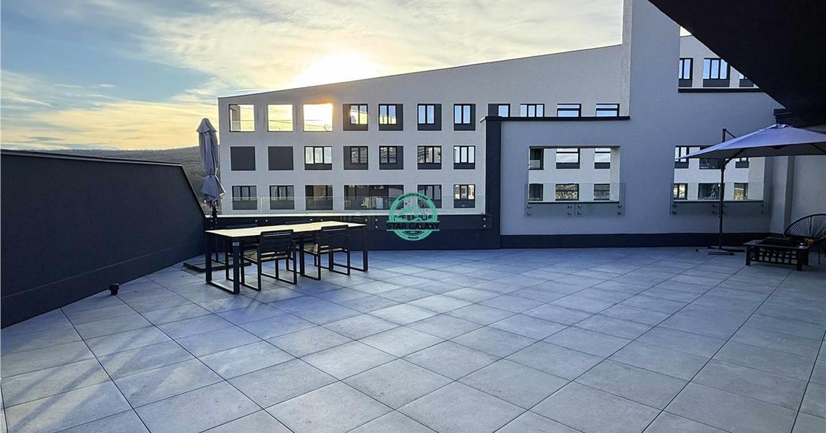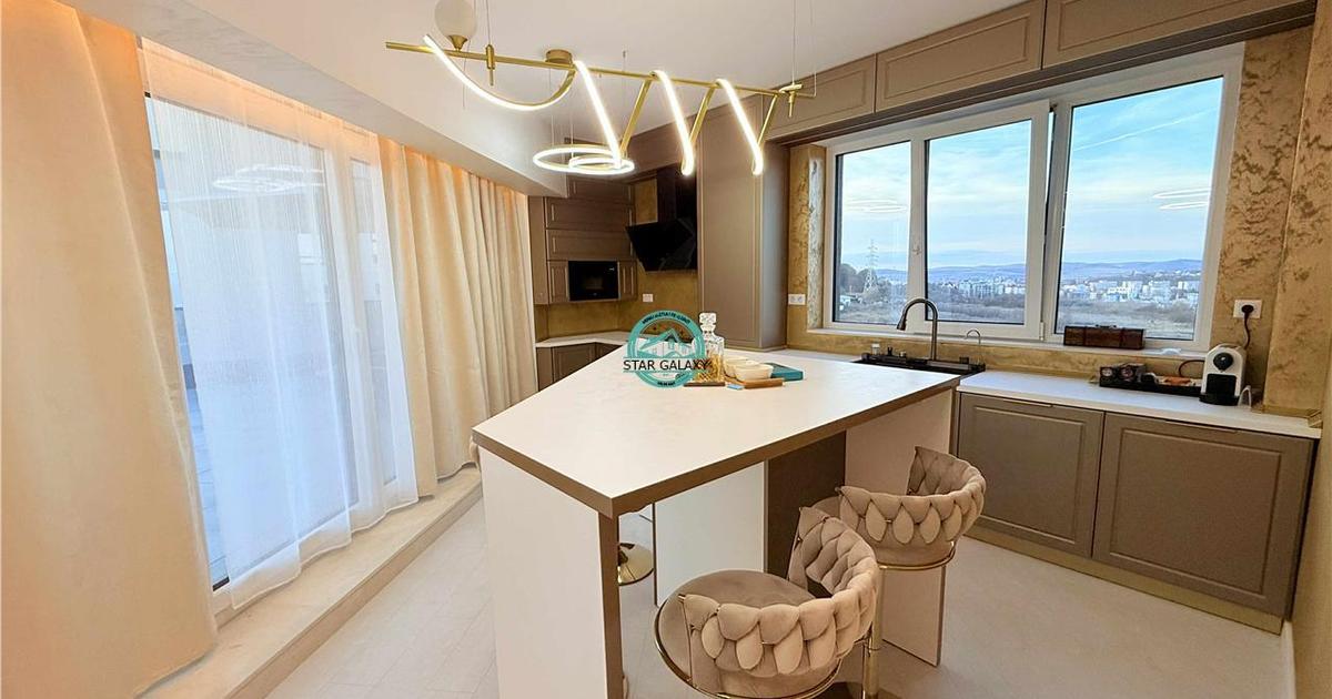 Star Galaxy vinde in Exclusivitate un apartament cu 3 camere tip Penthouse, situat la etajul 8 in ansamblul rezidential Concept 9. Imobilul este nou, termoizolat, dotat cu sistem de supraveghere video si beneficiaza de un loc de joaca pentru copii. Locatia este excelenta, la doar 2 minute de mers pe jos de Shopping City, cel mai mare mall din oras. Caracteristici generale Suprafata utila: 88 mp Terasa generoasa: 91 mp Compartimentare moderna: 2 dormitoare 1 living spatios open-space cu bucatarie 2 bai 2 holuri terasa de mari dimensiuni Mobilare si design Toata mobila este realizata pe comanda, atent proiectata pentru holuri, bai, living si bucatarie, oferind un design unitar si elegant. Electrocasnice incluse Bucatarie: electrocasnice AEG Living: aer conditionat si TV Samsung Baie: masina de spalat si uscator AEG Finisaje si instalatii Materiale premium si finisaje de calitate superioara, alese pentru confort si durabilitate. Puncte de intere...