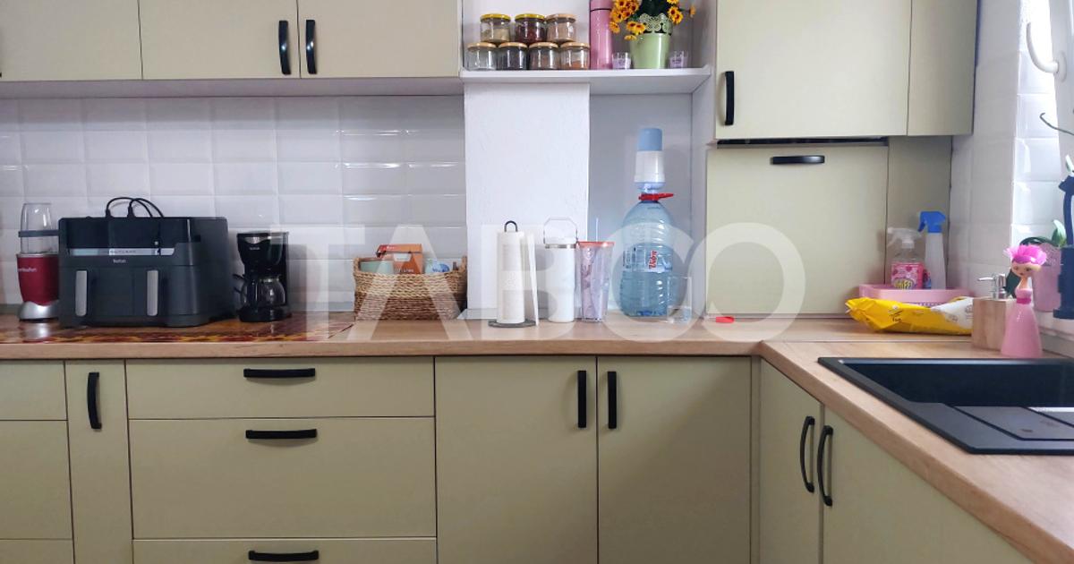 Comision 0%, Exclusivitate, apartament 3 camere de vanzare, decomandat, 66 mp, Cisnadie. Un apartament spatios in care te muti imediat deoarece este renovat complet ( instalatie electrica schimbata, instalatii sanitare, pechet, usi, bai renovate) si mobilat complet. Mobila de bucatarie este noua la comanda iar electrocasnicele sunt noi. Apartamentul este pregatit pentru o familie cu copii dar si pentru cupluri tinere. Blocul are acoperis cu tigla si are linistea deoarece fiind la etajul 4 nu are vecini deasupra. Apartamentul are acces la uscataria de pe etaj iar din acest motiv nu usuci haine in casa si nici in balcon.Borcanele cartofii si anvelopele masinii se pot depozita in pivnita atribuita apartamentului. Avantaje majore ale acestui apartament: • Pivnita • Renovat si mobilat la cheie • Acces usor catre scoala gradinita si magazine • Baie de serviciu • Geam la baie TABOO Imobiliare...