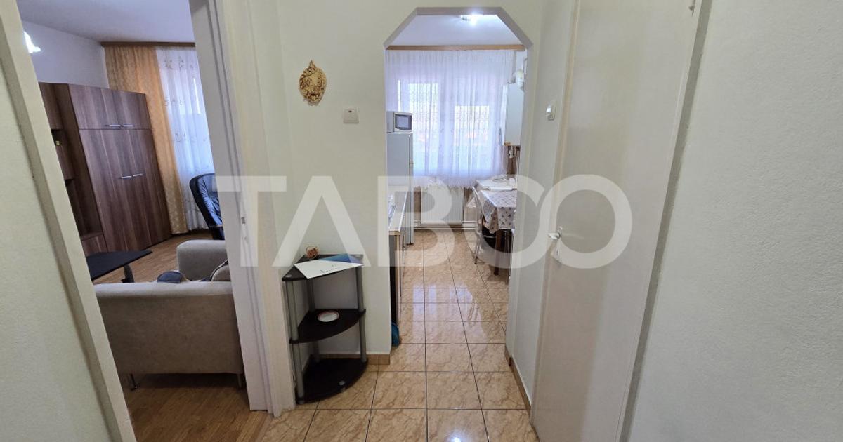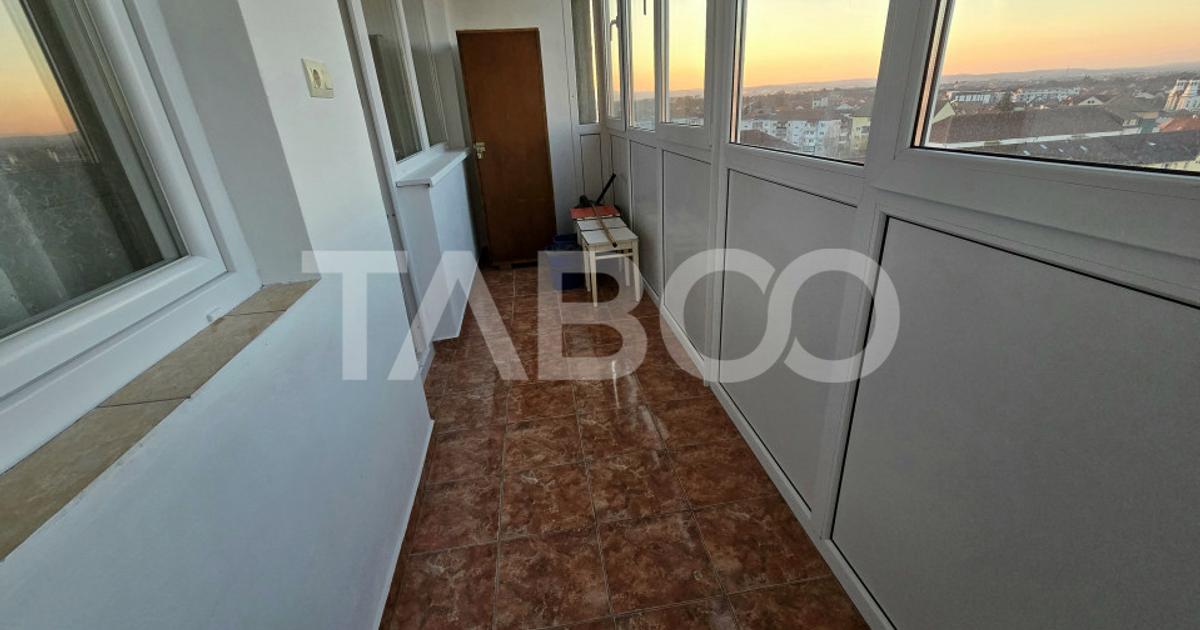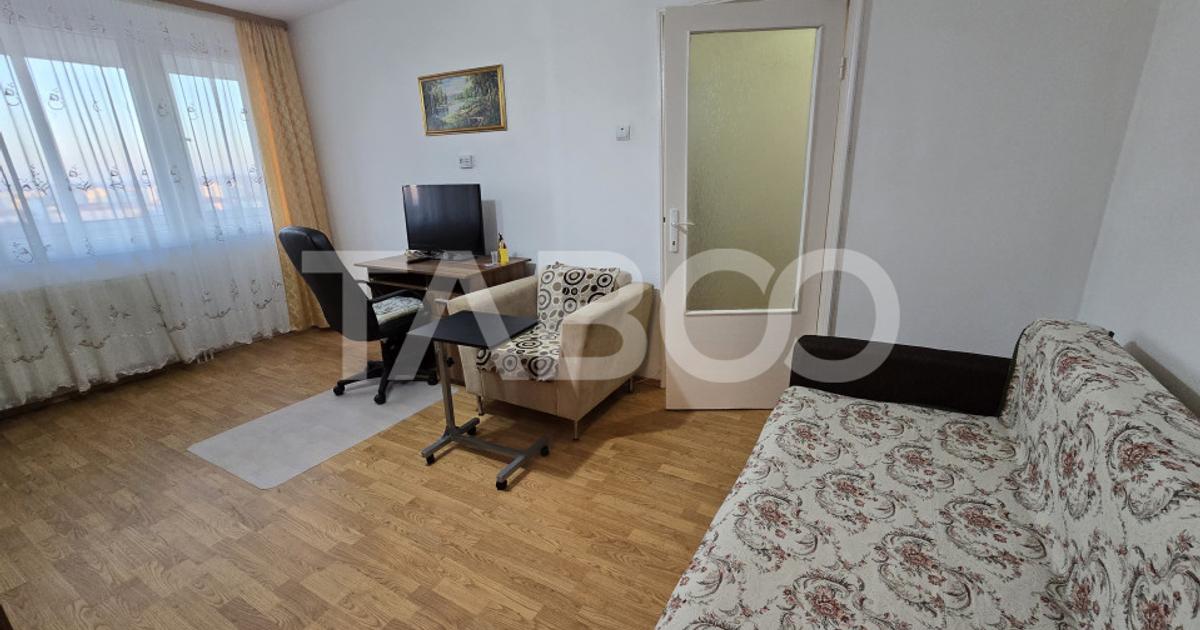Apartament 2 camere de vanzare, semidecomandat, 47 mp, zona Rahovei, Sibiu. TABOO Imobiliare propune un apartament de vanzare cu 2 camere, semidecomandat, situat in localitatea Sibiu, zona Rahovei, aflat la etajul 10 intr-un imobil tip bloc cu regimul de inaltime P+10, anul constructiei 1976, pe structura din beton. Suprafata utila de 47 mp+balcon de 8 mp. Apartamentul este structurat astfel: • Hol; • Bucatarie; • Debara; • Living cu balcon; • Hol intermediar; • Baie; • Dormitor; Finisajele interioare sunt clasice: • Usa intrare: metal; • Usi interioare: celulare; • Tamplarie ferestre: pvc, termopan; • Pereti: vopsea lavabila, faianta; • Podele: parchet, gresie. Utilitati si dotari: • Bucatarie: mobilata, utilata; • Mobilat: complet; • Utilitati: curent electric, apa, canalizare, gaz, catv, acces internet, fibra optica; • Izolatii: exterior, bloc izolat termic;...