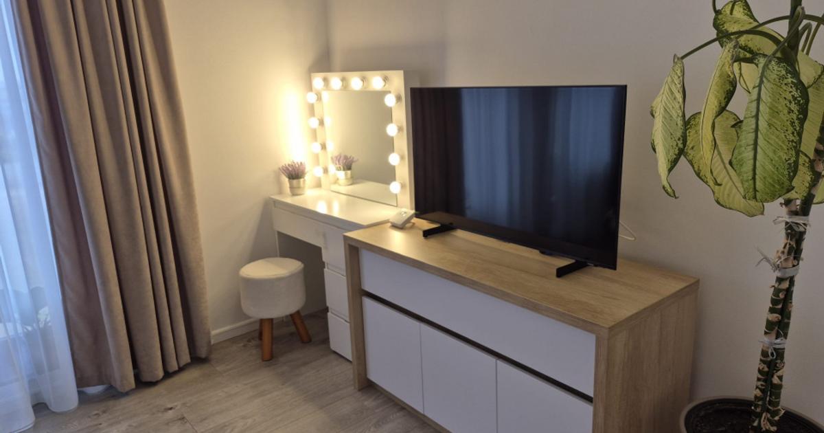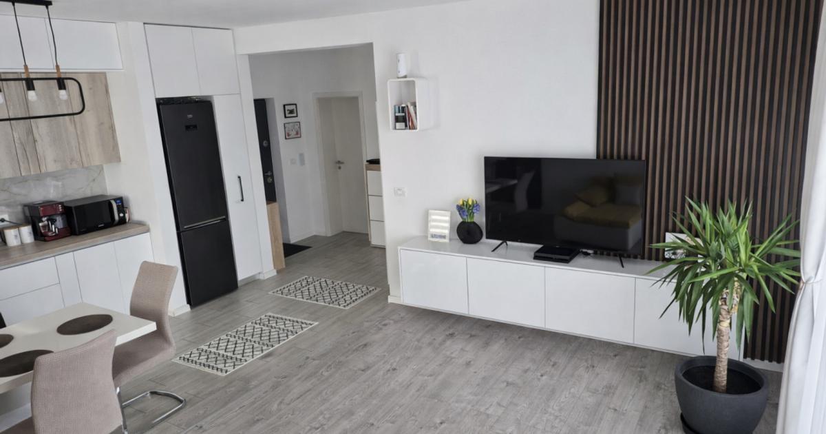 Va propunem spre vanzare un apartament cu 3 camere, spatios, lucrat, finisat si mobilat cu materiale de cea mai buna calitate, suprafata utila de 70 mp si 8 mp de balcon, situat in Giroc, in vatra Satului. Apartamentul dispune de urmatoarea compartimentare: hol acces, living generos cu bucataria open space si acces la terasa, 2 dormitoare, baie cu dus si geam, pod pe toata suprafata apartamentului. Dispune de: centrala proprie in condensatie, tamplarie pvc tripan, incalzire in pardoseala, aparat de aer conditionat, mobilier facut la comanda, electrocasnice de calitate superioara. Pretul de vanzare este de 133.900 Euro. Va asteptam cu drag la o vizionare!