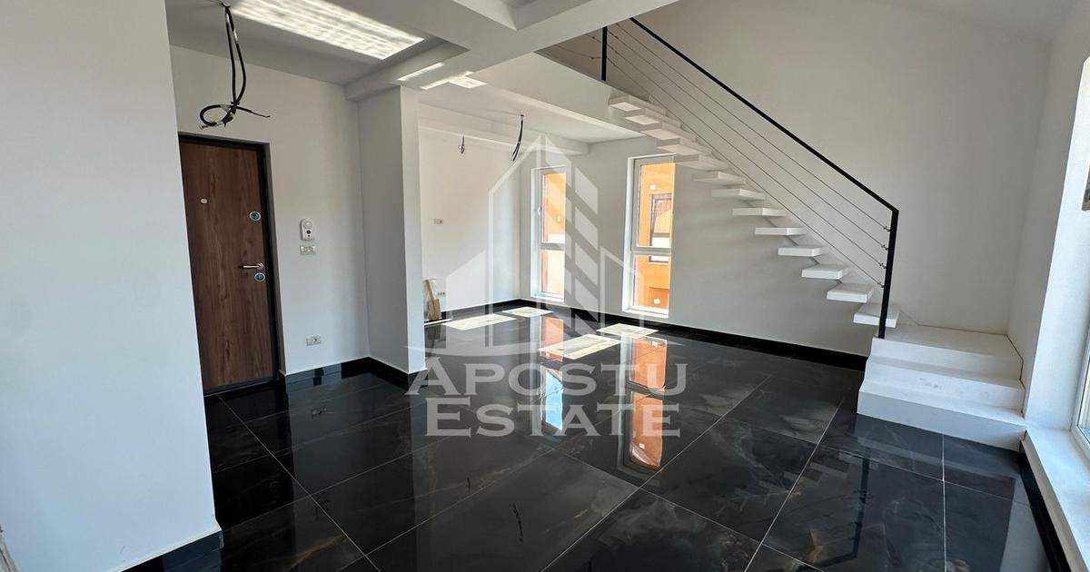 APOSTU ESTATE va propune spre vanzare un apartament de tip penthouse cu 3 camere situat in Giroc langa Lidl. Drumul de acces spre imobil este asfaltat, urmat de un scurt drum pietruit. In apropiere sunt magazine si supermarket-uri precum: Lidl, Mega Image, Penny, Profi, scoala si gradinita la o distanta de 10 minute, farmacie, brutarie, acces facil la mijlloace de transport in comun. Apartamentul este complet finisat si pregatit pentru noul proprietar. Imobilul este situat la etajul 3 din 3. Suprafata este de 83 mp utili + terasa de 10 mp. Compartimentare: Parter: - hol acces - bucatarie open space cu livingul si scara interioara pentru acces in mansarda. - dormitor - baie cu dus - terasa Mansarda: - hol acces - dormitor - baie cu cada Detalii tehnice: - constructie realizata in anul 2023 din caramida Porotherm de 25 cm. - exterior izolat cu polistiren de 10 cm eps 80. - pereti despartitori complet din caramida (fara rigips) tencuiti mecanizat finisati cu g...