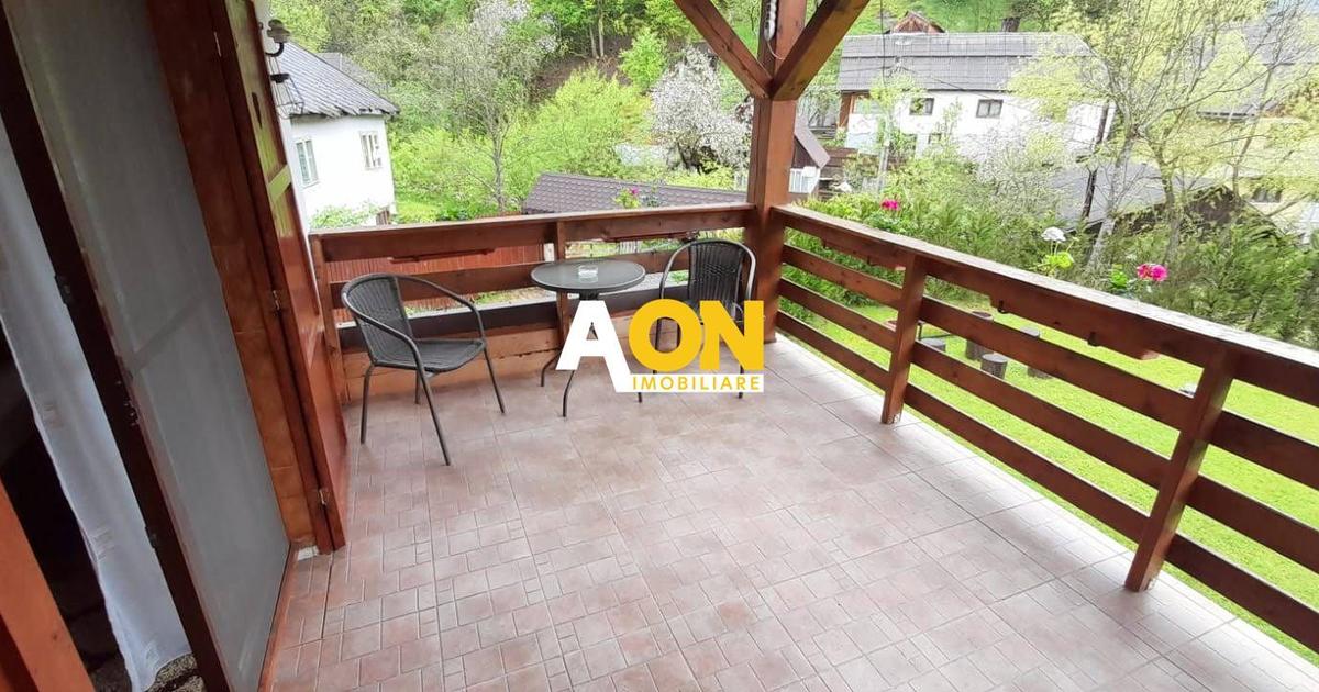 Daca sunteti in cautarea unei afaceri profitabile in domeniul turismului, va recomandam sa aveti in atentie aceasta pensiune de vanzare situata in Muntii Apuseni, in centrul localitatii Vadu Motilor, intr-o zona pitoreasca si plina de atractii naturale. Pensiunea este formata din doua cladiri, una principala si una secundara, pe un teren generos de 2740 mp. Cladirea principala are la parter o bucatarie spatioasa, o camera confortabila, un hol, birou, spatiu de depozitare, camera de lucru. casa scarii si o baie. La etaj, se afla trei camere dotate cu bai proprii, ideale pentru odihna si relaxare, iar la mansarda este o camera spatioasa cu baie prprie. Cladirea secundara are suprafata de 86 mp si este compusa din 2 camere, sala de sport si sauna uscata. In plus, in curte exista o anexa de 18 mp care e folosita ca zona de lounge. Pensiunea dispune de incalzire cu centrala pe lemne si calorifere, si este racordata la reteaua de apa si electricitate. Pensiunea este in functiune si are un p...