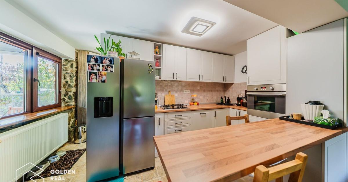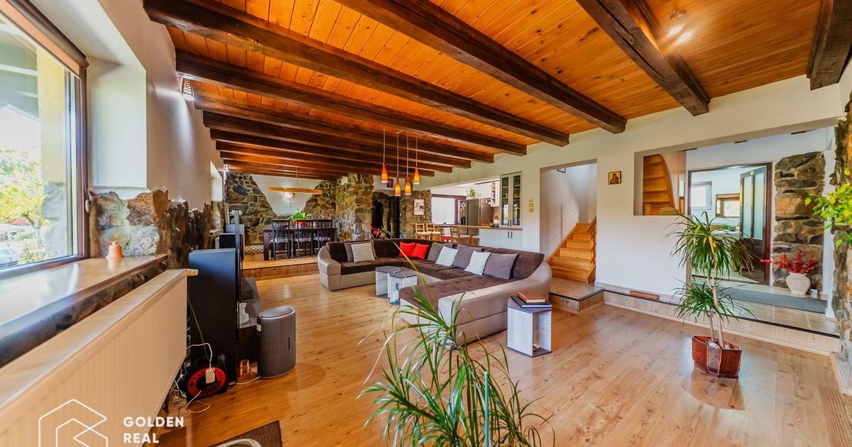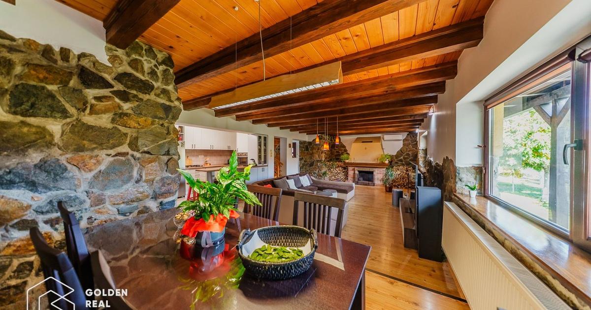 ID: CP2786518 Golden Real Estate vă propune spre vânzare o casă P+M, construcție 2007, în localitatea Fîntînele, la doar 9 km de Arad, cu un teren de 317 mp, și un front stradal de 30ml. Casa este construită din piatră de codru, având o amprentă la sol de 110 mp, o suprafață utilă desfășurată de 150 mp. La parter are următoarea configurație: hol, living foarte spațios, amenajat în stil rustic, cu semineu și loc pentru dinning, bucătărie open space mobilată și utilată cu toate electrocasnicele necesare, cămara de alimente și cameră tehnică, baie de serviciu, terasă acoperită. La etaj avem două dormitoare cu vedere spre stradă și ambele cu ieșire la balcon, un birou cu ieșire spre o terasă foarte spațioasă cu vedere în curtea interioară, baie mare. Curtea este frumos amenajată, cu spații verzi și un loc pentru gratar. Finisajele și amenajările interioare sunt de cea mai bună calitate, începând de la geamurile termopan, ușile interioare de lemn masiv, parchet laminat, gresie,...