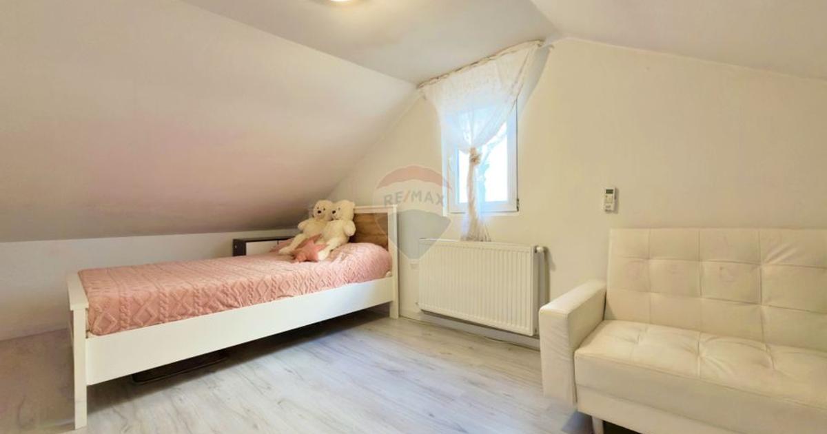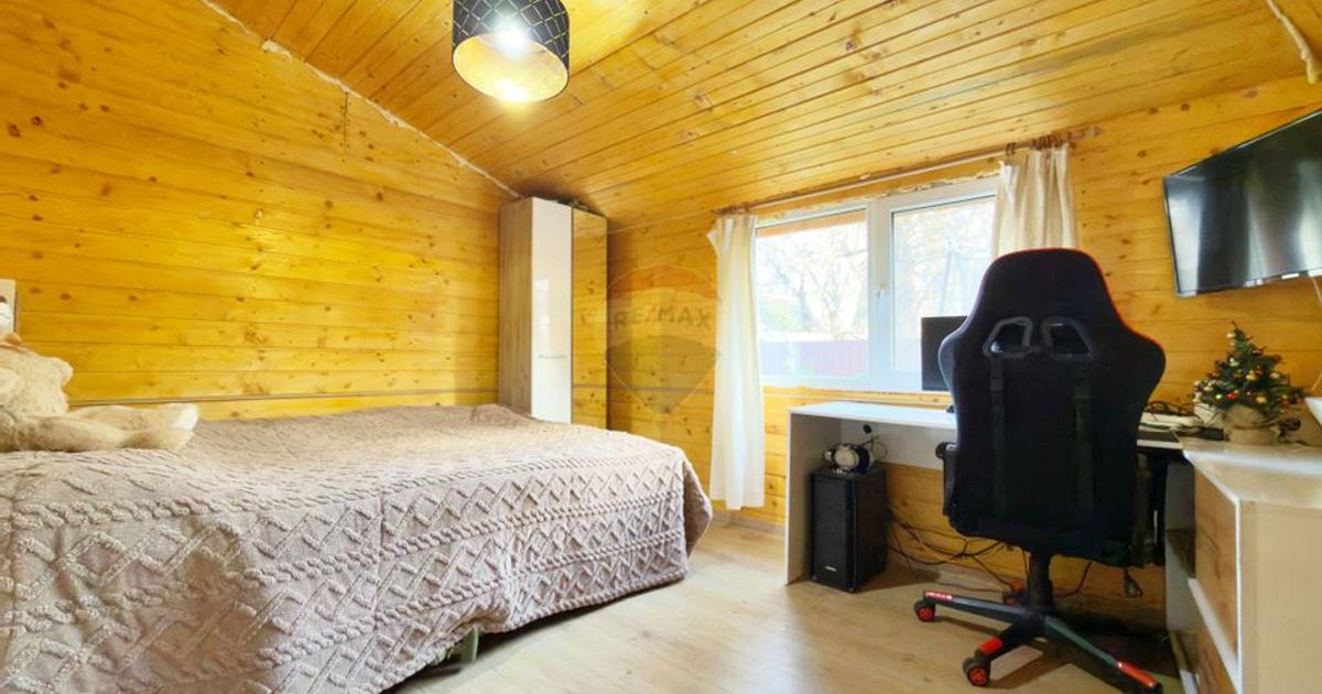 RE/MAX Dynamic vă propune spre vânzare, în exclusivitate, o casă situată în zona 3 Insule, Arad. Proprietatea, cu regim de înălțime P+M, are următoarele caracteristici: Suprafață: 72 mp construiți (conform CF) / 500 mp teren Material de construcție: lemn și panouri sandwich de 10 cm Utilități: curent electric, apă (de la rețea și forată), internet Parcare: acces auto în curtea proprietății Compartimentare: 5 camere (4 dormitoare și living), bucătărie, hol, 2 băi (câte una pe fiecare nivel), terasă exterioară acoperită Încălzire: termoșemineu pe peleți Fornello Fiama, 25 kW, cu 9 calorifere (aflat în garanție) Imobilul se vinde mobilat și utilat, conform fotografiilor de prezentare (cu excepția obiectelor personale). Dotări și specificații: proprietatea beneficiază de 3 aparate de aer condiționat, boiler termoelectric Tesy de 120 l, panou solar pentru apă caldă cu boiler de 100 l, mașină de spălat rufe Starlight, uscător de rufe Heinner, două televizoare (80 cm și 110 c...