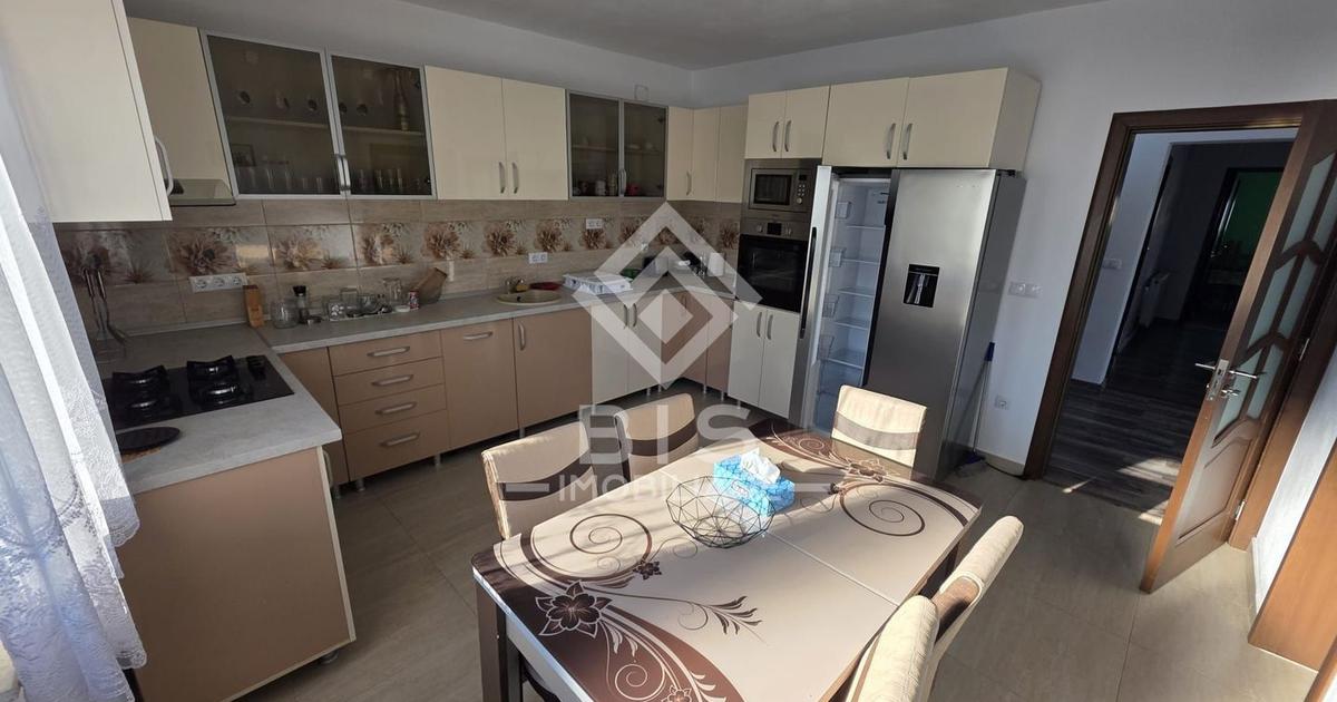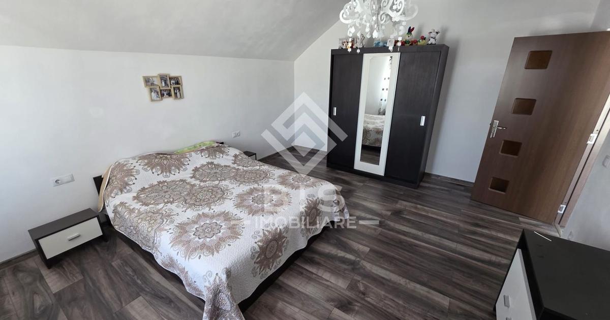 Casă P+M, 144 mp, teren 425 mp – construită în 2023 Vând casă modernă, construită în 2023, cu 144 mp amprentă la sol și teren de 425 mp, situată într-o zonă liniștită de case. Compartimentare: Parter: hol, living, bucătărie, dormitor, baie Etaj: 4 dormitoare, baie Imobilul este spațios, luminos, finisat modern, cu camere generoase și două băi mari. Curte îngrijită, loc ideal pentru familie. Casa este gata de mutat, fără necesitatea unor renovări.