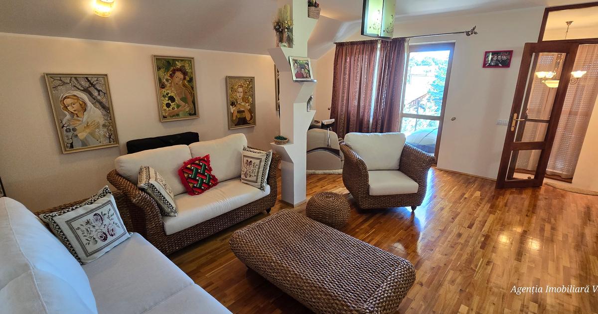 Casa la cheie S+P+M, zona centrala, mobilata si utilata, 350mp construiti, 857mp teren drept amenajat. Parter:dormitor, living, bucatarie, dinning , uscator, baie, sauna, garaj Mansarda:2 dormitoare, 2 bai, living, dressing, 3 terase Toate utilitatile, centrala gaz, semineu, panouri fotovoltaice si solare, curent trifazic, foisor, beci, copaci ornamentali, 3 AC, sistem de alarma si supraveghere. Se vinde mobilata si utilata, totul de foarte buna calitate, scara interioara din lemn, mobilier lemn masiv. Zona Puskin, aproape de Piata Mare,acces la strada asfaltata! ID-424 Pentru informatii suplimentare, pentru programarea unei vizionari sau pentru a afla oferta noastra completa nu ezitati sa ne contactati telefonic la 0748/115.912 sau 0744/530.803, sau la sediul agentiei imobiliare Venus, pe str.Marchian nr. 1(langa Banca Transilvania) Precizati ca ati vazut oferta cu ID-ul:424