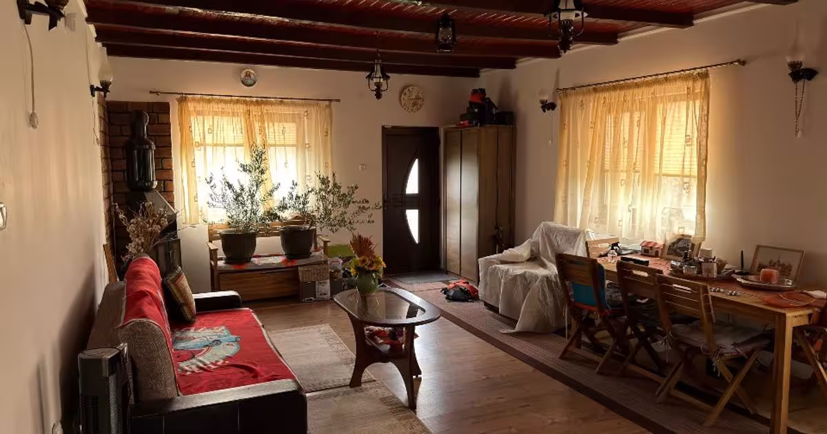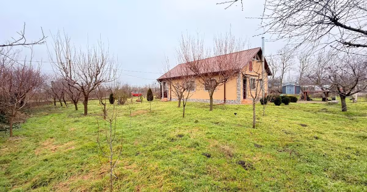 Casa construita in 2015-2016 cu 2 dormitoare , 1 baie , 1 bucatarie , 1 living , 1 beci si un pod inalt / mansarda. Amprenta la sol de 99 m2. In fata casei se afla de asemenea o terasa acoperita incorporata in cladire de 7 m2. In spatele casei este o terasa betonata neacoperita de 8 m2. Suprafata utila este 82 m2 fara pod si beci inclus. Sursa de incalzire a casei este un semineu în living iar in camere panouri termice. In fata casei exista terasa betonata unde pot fi parcate 2 masini. Casa este dotata cu sitem de alarma AJAX si camere EUFY. Casa este dotata cu fosa septica. Se poate pune internet prin fibra. Casa se vinde mobilata. Curtea este de 4858 metrii si contine 110 pomi fructiferi, put forat, 2 bazine de 1 m3 pentru acumularea apaei din put. Bazinele sunt conectate la sistem de irigatie a curtii pentru gazon. O magazie de 2.5 m2. Pret negociabil , direct proprietar, in caz ca nu raspund puteti trimite mesaj pe whatsapp.