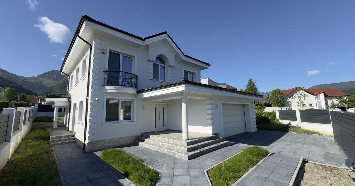 Descoperă o proprietate situată într-unul dintre cele mai exclusiviste cartiere din Brașov, renumit pentru aerul său extrem de curat și peisajele spectaculoase. Casa este amplasată pe un teren de 750 mp, cu priveliște directă către dealul Bunloc, iar apusurile pot fi admirate în toată splendoarea lor din dormitorul matrimonial. Proprietatea beneficiază și de 75 mp cota parte din drumul privat cu acces securizat, care oferă locuri de parcare suplimentare pentru vizitatori. Suprafață construită: 162.89 mp | Suprafață desfășurată: 268.73 mp | Curte privată: 432.9 mp | Garaj dublu încălzit + 2 locuri de parcare exterioare Parter: Living generos, open-space, cu șemineu pe lemne și ferestre mari. Bucătărie modernă, complet mobilată și echipată, cu insulă și zonă de stat. Zonă de dining cu acces la o terasă acoperită, ideală pentru mesele în aer liber. Baie cu duș, vestibul spațios, garaj dublu încălzit cu ușă automatizată NICE și posibilitate de instalare a unei stații de încărcare pen...