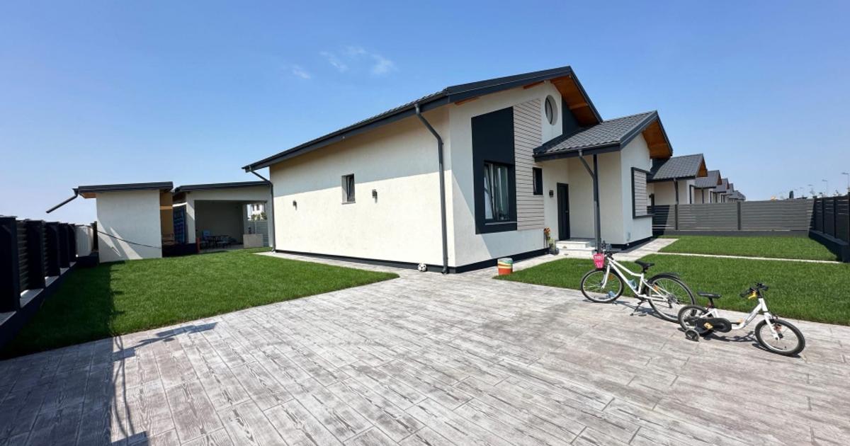 Comision 0%. Direct dezvoltator. Avans minim 15% Ansamblu rezidential format din 16 case individuale la 5 minute de Autostrada A0. Casele beneficiaza de : incalzire prin pardoseala, pompe de caldura Ferolli, panouri solare de 5 kw, contor trifazat de 12 kw, pereti Ytong grosime 40 cm, acoperis Bilka din tabla, ferestre tripan Salamander. Se predau complet finisate Pret 134000 euro+ Tva 0768.202.707 Vera Radu