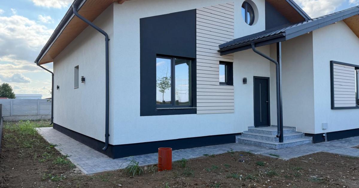 Mutare imediata Comision 0%. Direct dezvoltator. Avans minim 15% Ansamblu rezidential format din 16 case individuale la 5 minute de Autostrada A0. Casele beneficiaza de : incalzire prin pardoseala, pompe de caldura Ferolli, panouri solare de 5 kw, contor trifazat de 12 kw, pereti Ytong grosime 40 cm, acoperis Bilka din tabla, ferestre tripan Salamander. Se predau complet finisate Pret 134000 euro+ Tva 0768.202.707