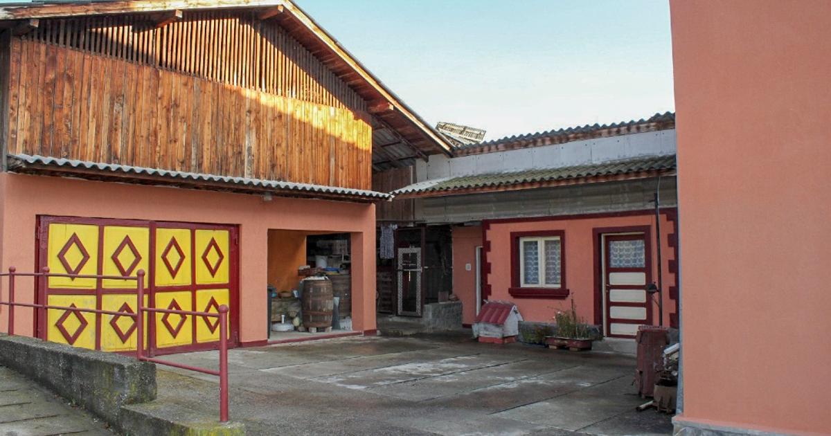 O casa cu fundatia din beton, pereti din caramida, acoperis nou din tigla metalica (se vede doar intr-o fotografie) compusa din: