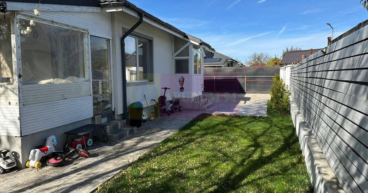 Casa este situată în localitatea Săbăreni, la aproximativ 10 km de centura Bucurestiului, la 4 km de A0 si A1, într-o zonă rezidențială nouă. A fost construită în 2020, cu structura de rezistență din beton armat si zidărie de caramidă, tencuită si izolată termic. Tâmplarie Salamander cu geamuri termopan, cu centrală termică pe gaze si calorifere. Este finisată complet: gresie, parchet, faianță, obiecte sanitare, usi interioare. Terasa este acoperită. In plus casa beneficiază si de o pivniță de aproximativ 9 mp de 2,20 m adâncime. Bucataria este mobilată si utilată Casa se poate vinde semimobilată: livingul, bucătăria si un dormitor. Un dormitoar va fi nemobilat. Curtea este amenajată, trotuare, alee auto si pietonală din beton amprentat, gazon, pomi. Poarta auto are deschidere automatizată. Pret 125.000 EUR. Nu se plăteste TVA sau comision.
