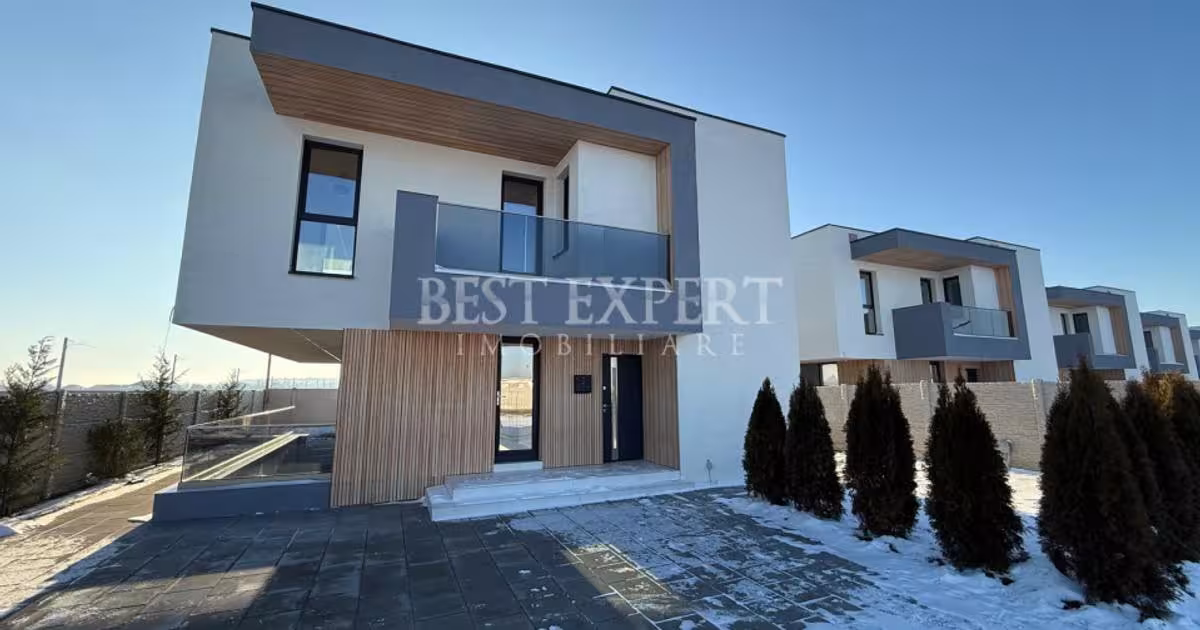 Casa moderna, construita pe un teren de 400 mp, cu o suprafata utila de aproximativ 120 mp, parte dintr-un ansamblu rezidential exclusivist de 25 de vile, ansamblu inchis, cu acces securizat si monitorizare video.” Imobilul are regim de inaltime P+E si este compartimentat echilibrat. La parter se regasesc camera tehnica, living cu zona de dining, bucataria si grupul sanitar, insumand aproximativ 54 mp utili. Etajul dispune de 3 dormitoare, 2 bai si 2 balcoane, cu o suprafata utila aproximativ de 66,15 mp. Acelasi model de casa il regasesti si in varianta cu subsol la un pret 240.000 Euro +TVA Locuinta beneficiaza de centrala proprie, incalzire in pardoseala, panouri solare, ferestre tripan, prize modulare si sistem de aspersoare pentru irigarea gazonului. Curtea este amenajata, avand o suprafata de aproximativ 180 mp, iar proprietatea dispune de trei locuri de parcare. Ansamblul este complet amenajat, cu drumuri pavate si infrastructura moderna. Toate locuintele su...