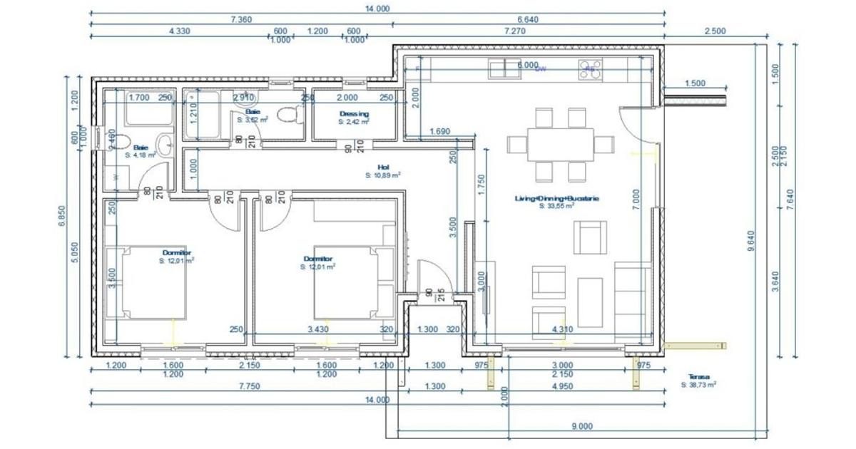 - kub63 - 3 camere - 162.000 euro + TVA - supra 54 mp utili + 16 mp tersasa = 70 mp
